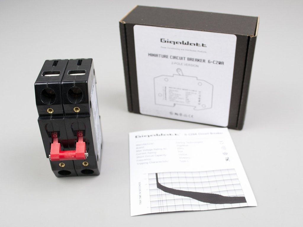 High–End Jistič G-C16A (použití do jakéhokoliv rozvaděče) na zakázku vyrobený firmou Carling - dvojité provedení 2pólová verze byla vyvinutá pro ještě větší ochranu elektrického obvodu Specifications: Line Voltage: 250V 50/60Hz Current Rating: 16A Short Circuit Capacity (Icn): 1500A Tripping Charakteristic: Type C Dimensions: 92x72x38 mm Gross Weight: 0,16 kg Firma Gigawatt používá i ve svých síťových pračkách ,osvědčené hydraulicko-magnetické spínače této americké firmy Carling. Zde část textu k modelu PC4-EVO a PC3SE-EVO:V této pračce bylo upuštěno od použití tradičních ochranných prvků, jako jsou drátkové nebo tepelné pojistky,které omezují volný průběh proudu k ochranným obvodům a mají tak negativní vliv na zvuk.Přepěťovou ochranu pračky zajišťuje startovací blok, který obsahuje plazmové jiskřiště, rychlé varistory nové generace a vstupní filtr.Pro zabezpečení proti přetížení je proto použit hadraulicko-magnetický spínač firmy Carling Technologies,který je vyráběn v USA na zakázku pro značku Gigawatt. Tento prvek sleduje hodnoty proudu procházejícího vnitřními obvody a zároveň plní funkci hlavního vypínače. Všechny tyto prvky ve spolupráci s důkladně provedenou elektrickou instalací zaručují komplexní ochranu před přepětím a přetížením.Doplňkové parametry