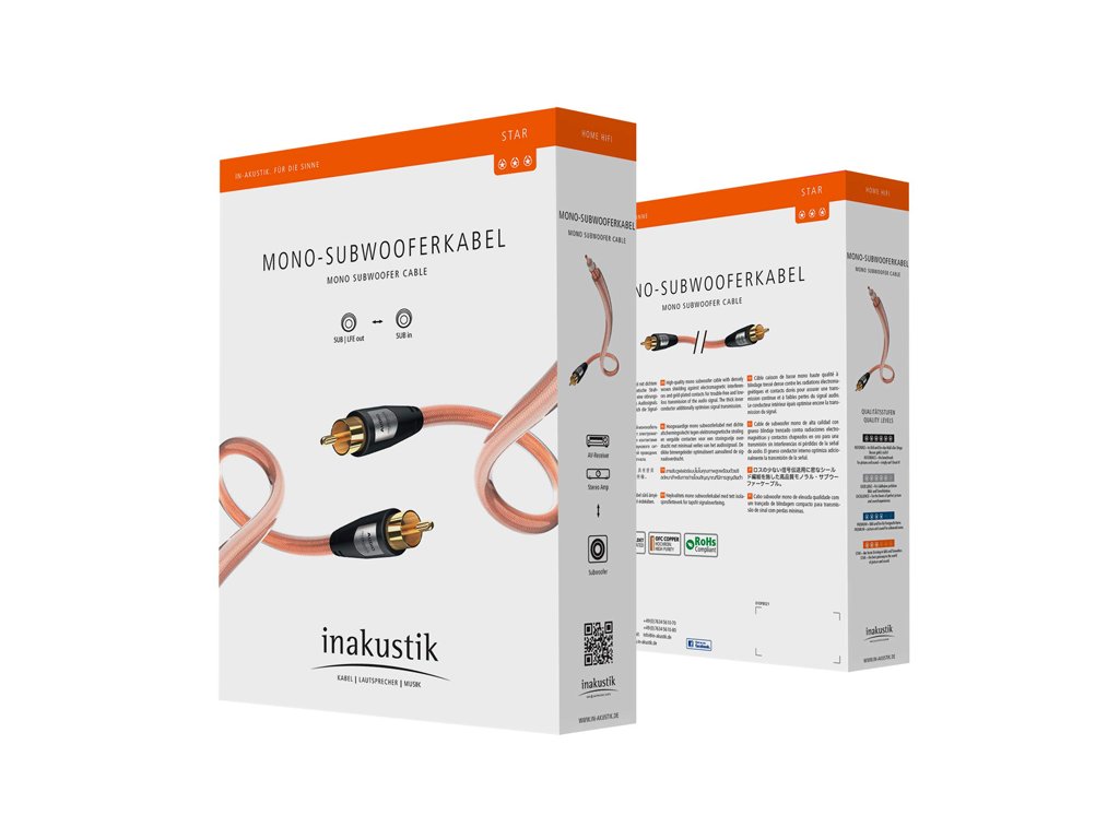 Mono subwoofer kabel řady Star redukuje ztráty v kvalitě zvuku prostřednictvím jeho hustšího stínění a vnitřního vodiče s větším průměrem. Kovové konektory kryté pozlacením 24 karátovým zlatem jsou pak zárukou vysoce kvalitních spojů.