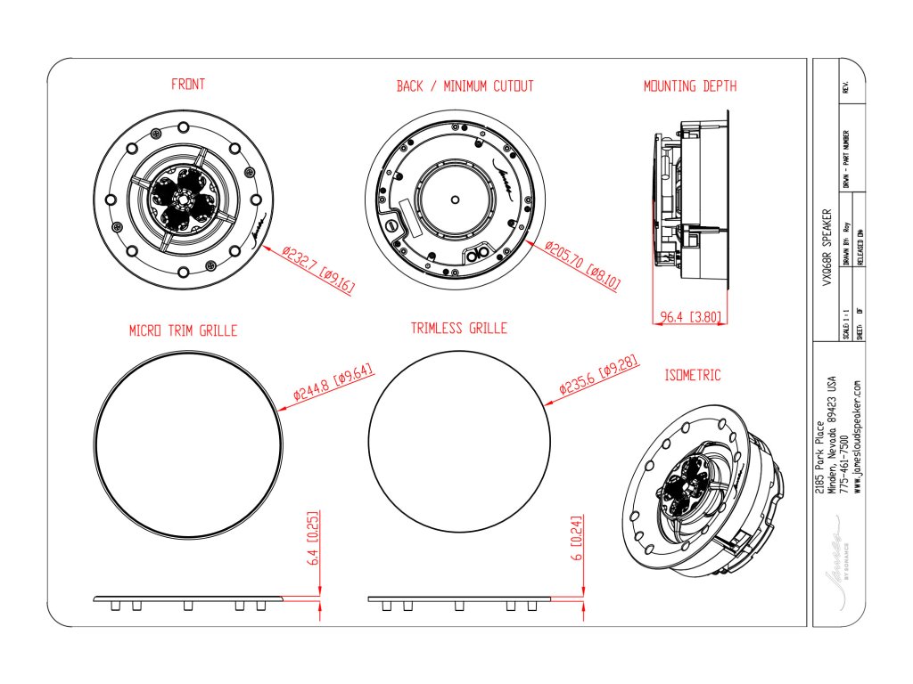 | Rozměry: | 244.8 mm (průměr, Micro Trim mřížka), 235.6 mm (průměr, bezrámečková mřížka), 96.4 mm (instalační hloubka) |