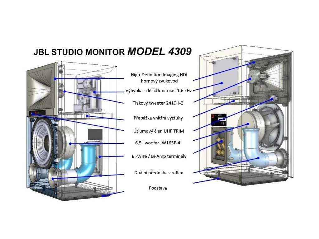JBL 4309 navazuje na významné úspěchy dosažené společností JBL na poli vývoje studiových monitorů. Využívá několik uznávaných a patentovaných technologií, jako například speciální geometrii zvukovodu High-Definition Imaging (HDI™), 1" (25 mm) tlakový tweeter 2410H-2 a 6,5" (165 mm) woofer JW165P-4 s litinovým rámem a kuželovou membránou z čisté buničiny. Díky těmto technologiím dokáží reproduktory vykreslit zvuk s neuvěřitelnou přesností, výraznou dynamikou a typickou basovou signaturou JBL. Zvukové kvality a transparentnost projevu, kterou vyhledávají a oceňují profesionální mistři zvuku při své studiové práci, ocení ale jistě i v domácím prostředí nároční milovníci puritánského poslechu. JBL 4309 dokáží strhnout, nadchnout a donutí vás milovat hudbu.