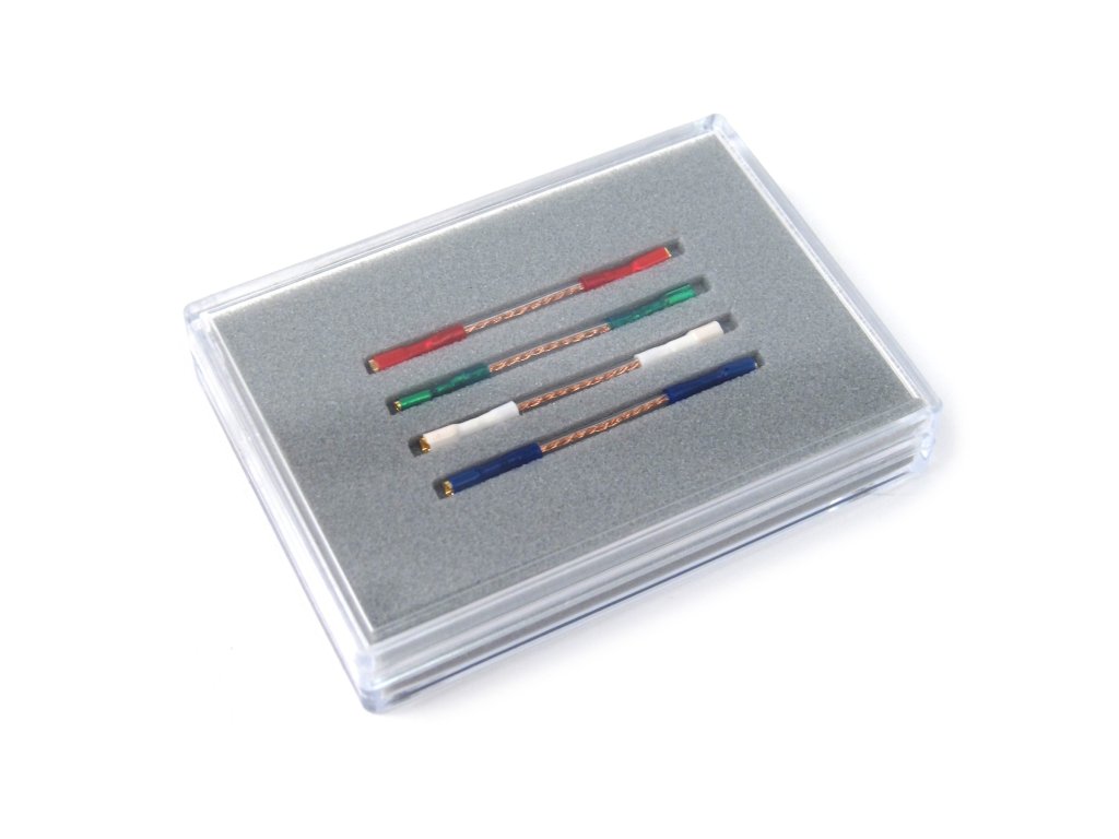 Kvalitní přesně kroucené drátky pro připojení přenosky 99,9999% 6N OFC fine line Velmi dobrá vodivost, zvláště vhodná pro vysoce kvalitní headshelly a přenosky Vhodné pro MM i MC přenosky Sada 4ks barevně odlišených drátků pro připojení přenosek, vnitřní vodič 99,9999% 6N OFC Fine čistá měď Pozlacené kontakty / pinyDoplňkové parametry