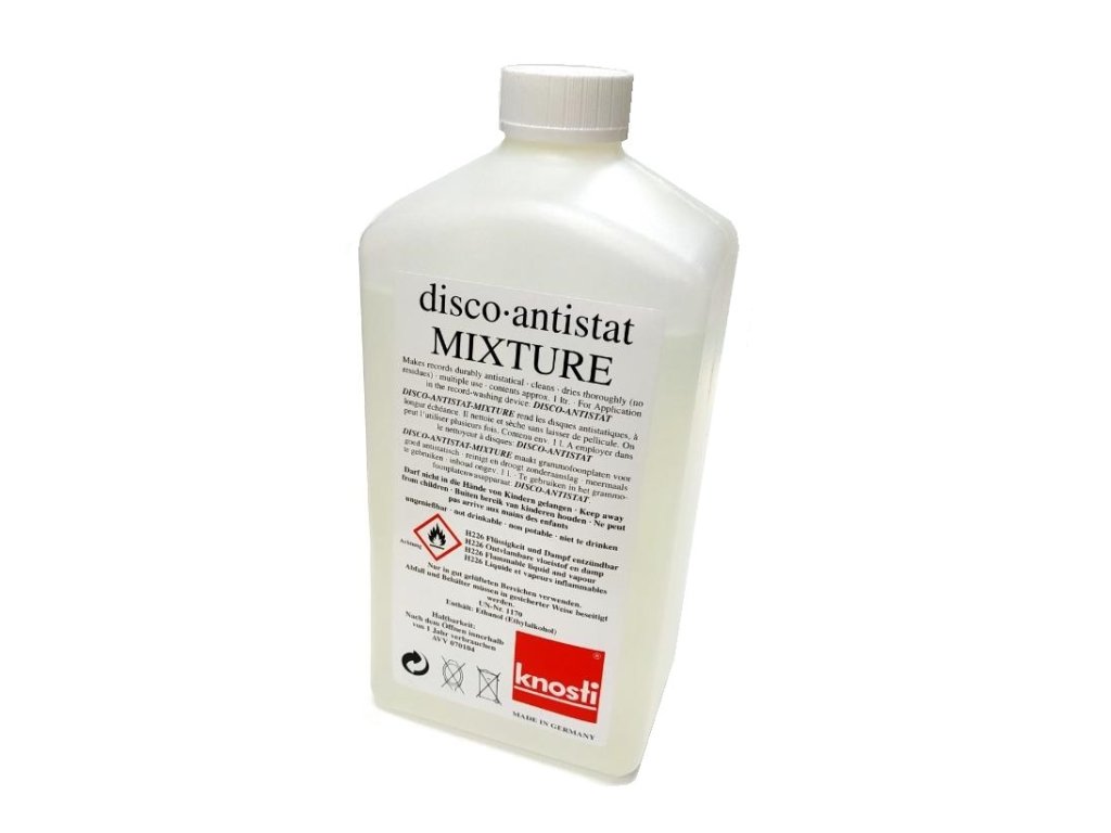 Disco-Antistat Mixture" Zakoupením DISCO-ANTISTAT MIXTURE jste učinili rozhodující krok k čištění a péči o vaše cenné záznamy.Díky Disco-Antistat Mixture můžete snadno a důkladně vyčistit staré a silně znečištěné vinyly a udělat je "antistatické". Dokonce i desky, které byly přehrávány jako mokré,lze znovu přehrávat nasucho. Ale i zcela nové desky se při koupeli ve směsi DISCO-ANTISTAT okamžitě stanou antistatické. Statický náboj již nelze detekovat ani pomocí citlivých měřicích přístrojů. Obsah: 1 litr k okamžitému použití Made in Germany Poznámky k bezpečnosti H-věty h226: Hořlavá kapalina a páry. Poznámky k bezpečnosti P-věty p280: Používejte ochranné rukavice/ochranný oděv/ochranné brýle/obličejový štít. p210: Chraňte před teplem, horkými povrchy, jiskrami, otevřeným ohněm a jinými zdroji zapálení. Zákaz kouření. p303-p361-p353: PŘI STYKU S KŮŽÍ (nebo s vlasy): Veškeré kontaminované části oděvu okamžitě svlékněte. Opláchněte kůži vodou [nebo osprchujte]. p370-p378: V případě požáru: K uhašení použijte… p403-p235: Skladujte na dobře větraném místě. Uchovávejte v chladu. p501: Zlikvidujte obsah / obal v souladu s místními předpisy.Doplňkové parametry