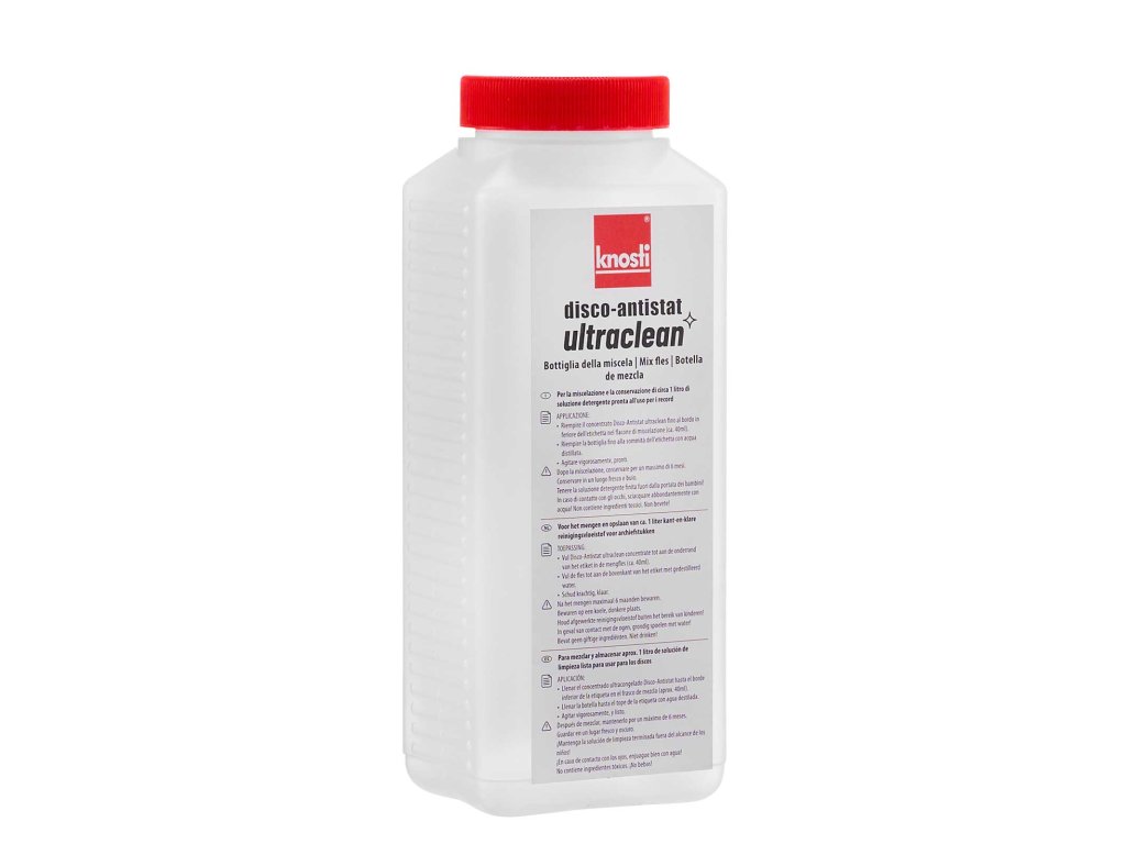 Disco-Antistat míchací láhevLáhev pro míchání Disco-Antistat Ultraclean (1302000 ) a uchovávání čisticí kapaliny Snadno promíchejte koncentrát ve 3 krocích (označení na lahvičce) Snadné použití díky velkému vstupnímu otvoru Praktická možnost uložení pro již smíchaný čistič gramofonových desekDoplňkové parametry