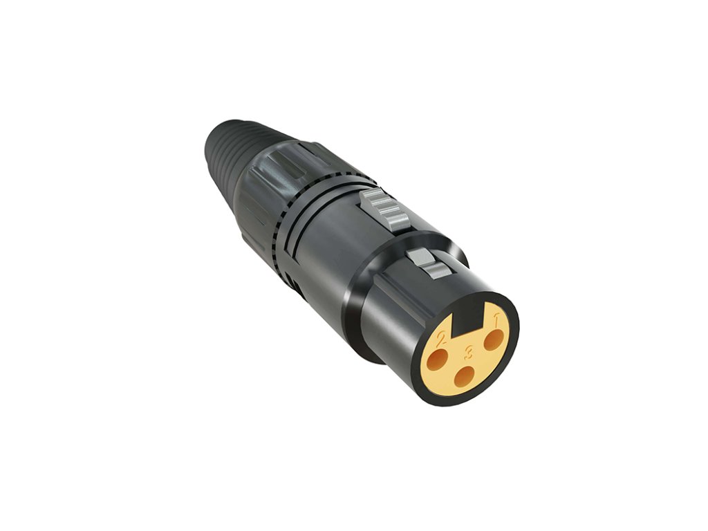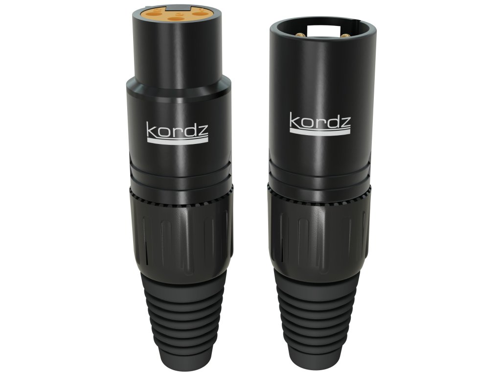 KORDZ ONE XLR konektor Konektory Kordz ONE XLR poskytují odolnost a spolehlivost pro profesionální integrátory. Tento 3 pinový konektor XLR s pozlacenými piny a robustním povrchem ze slitiny zinku je zkonstruován tak, aby odolal úskalím častého používání. Navržen tak, aby dokonale vyhovoval standardním specifikacím, zajišťuje bezproblémovou kompatibilitu napříč audio zařízeními. Díky pevné konstrukci je konektor ideální volbou pro profesionální audio instalace. 3-pin XLR, samec / samice, černá barva Robustní povrch ze zinkové slitiny a pozlacené piny pro dlouhou životnost Životnost více než 5,000 cyklů vkládání Kompatibilní se širokou škálou kabelů Standardy IEC 61076-2-103 Unikátní Kordz oranžová vnitřní vložka pinu pro snadnou identifikaci Požární odolnost UL94 V-0 Doživotní zárukaDoplňkové parametry