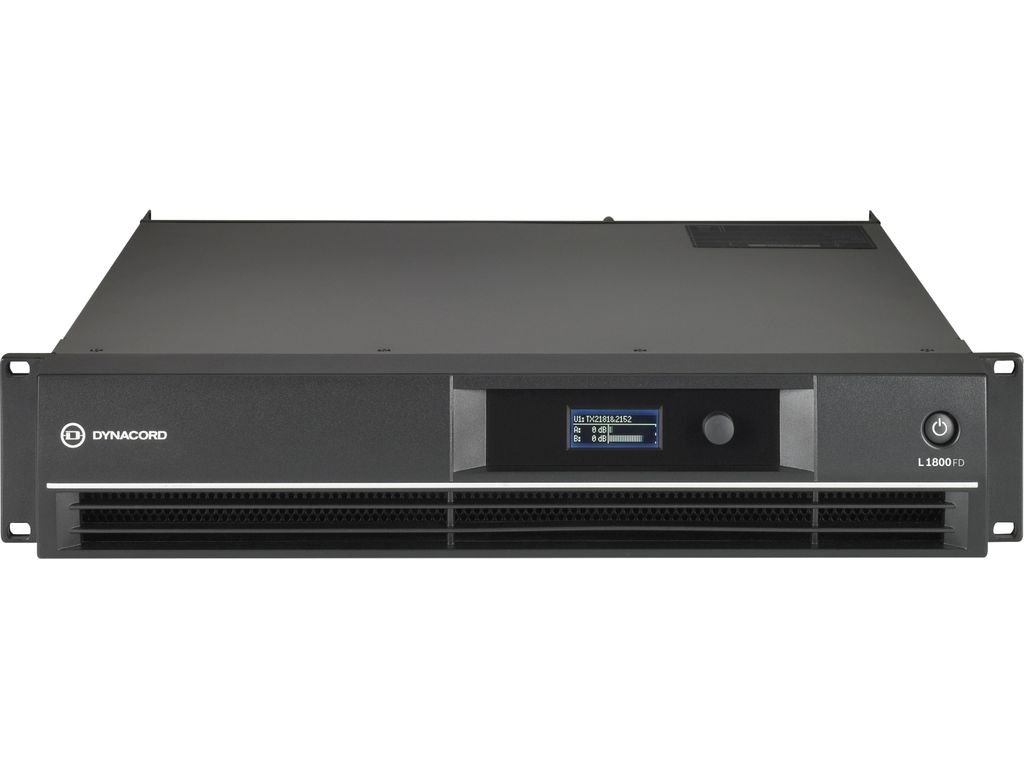 Dynacord L1800FD DSP je výkonný zesilovač ClassAB s DSP processingem určený pro touring aplikace (ozvučování). Umožňuje trvalý stabilní provoz i do zátěže 2 ohm, ovládání DSP je možné z menu, nebo z intuitivního rozhraní řídícího software. Implementována technologie LPN filtrů (lepší buzení repro transienty - viz whitepaper), FIRdrive (fázově lineární filtry), hlídání připojené bedny (zatěžovací impedance), ochranné limitéry aj. Trvalé výkony: 2x 1400 W/ 2 ohm, 2x 850 W / 4 ohm, 2x 450 W / 8 ohm; symetrické vstupy/thru na XLR, výstup na Neutrik SpeakOn; Rozměry: 483 x 88 x 462.4 mm, hmotnost: 16.2 kgDoplňkové parametry