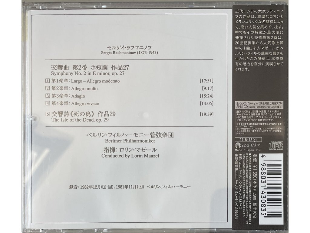 Catalog No.: UCCS-50105 JAN/ISBN: 4988031430835 Number of Discs: 1 Country/Region of Manufacture: Japan 1. Largo - Allegro Moderato 17:512. Allegro Molto 9:173. Adagio 15:244. Allegro Vivace 13:055. The isle of The Dead, op. 29 19:39Doplňkové parametry