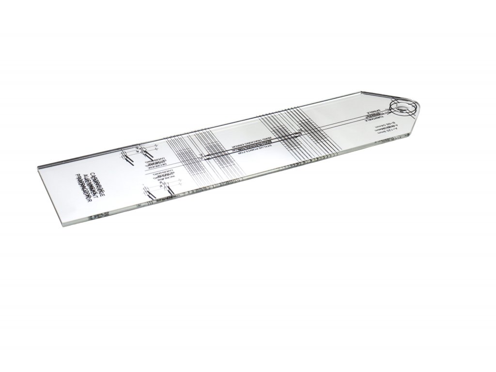 Šablona se zrcátkem pro správné nastavení přenosky Nastavení offsetového úhlu a kolmosti přenosky Offsetový úhel je úhel, o který je vychýlená přenoska vůči spojnici hrotu přenosky a osy otáčení raménka. Nastavujeme jej ve zvoleném nulovém bodě dle koupené šablony. Při nastavování je potřebapostupovat pečlivě, trpělivě a hlavně co nejpřesněji.Doplňkové parametry