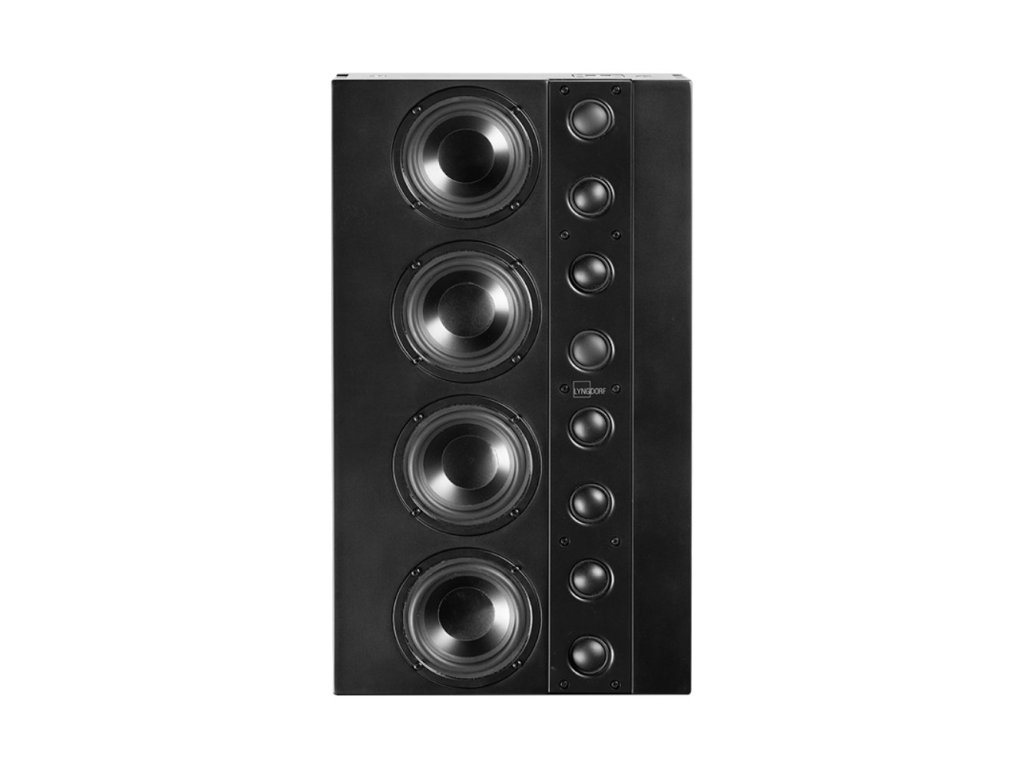 Linkový instalační reproduktor určený pro montáž na stěnu. S našimi zkušenostmi s vytvářením reproduktorů pro referenční domácí kina Steinway Lyngdorf, zejména pro vynikající modely Steinway & Sons LS, v kombinaci s našimi zkušenostmi z reproduktorů Lyngdorf MH a FR, naši inženýři vyvinuli LS-1000 pro audio systémy Lyngdorf. Čtyři moduly LS-1000 vytvářejí sestavu reproduktorů, přičemž každý modul sestává ze čtyř 115 mm středobasových měničů s lehkými hliníkovými kužely, 25 mm kmitacích cívek a výkonných odvětrávaných magnetů, doplněných osmi 1” výškovými měniči s měk. Výsledkem kombinace čtyř modulů LS-1000 je sestava se 16 středobasovými a 32 výškovými měniči. Lyngdorf LS-1000 Left má rozptyl zvuku směřující mírně dovnitř, když je umístěn na levé straně, čili pryč od boční stěny a směrem k oblasti poslechu. Snížené odrazy od podlahy a stropu LS-1000 se skládá z více identických měničů ve vertikálním poli. Ve srovnání s konvenčními bodovými reproduktory, linkový zdroj minimalizuje efekt odrazů od podlahy a stropu omezením vertikálního rozptylu zvuku. Posluchači uslyší více z reproduktoru a méně z místnosti. LS-1000 si také zachovává svoji zvukovou energii v celé místnosti a vnímaná úroveň hlasitosti je na každém sedadle velmi jednotná. Ve všech směrech se výrazně otevírá tzv. „Sweet spot“. Velmi pevná modulární konstrukce LS-1000 je velmi odolná modulární konstrukce, která minimalizuje mechanickou rezonanci. Celkový design skříňky je velmi štíhlý, díky čemuž lze velmi jednoduše instalovat za akusticky průhledné zástěny. Jednoduchá instalace Moduly LS-1000 se připojují pomocí integrovaných kontaktních kolíků, takže mezi moduly nejsou zapotřebí žádné kabely externích reproduktorů. Snadno kombinovatelné se zesilovači S výkonem IEC 300 wattů, citlivostí 98 dB 2,83 V/1m a kombinovanou impedancí 4 ohmy při použití čtyř modulů se LS-1000 snadno kombinuje se zesilovači. Vysoká citlivost kombinovaná s typickou rovnoměrnou zvukovou energií linkového zdroje v celé místnosti umožňuje LS-1000 dosahovat velmi vysoké úrovně hlasitosti velmi jednoduše s daným výkonem zesilovače. Frekvenční rozsah 100 až 20 000 Hz umožňuje různým basovým reproduktorům nebo subwooferům bezproblémově doplňovat LS-1000, ideálně s Lyngdorf BW-20. Reproduktor Lyngdorf LS-1000 Left jsou určeny pro levý kanál. Linkový instalační reproduktor určený pro montáž na stěnu. S našimi zkušenostmi s vytvářením reproduktorů pro referenční domácí kina Steinway Lyngdorf, zejména pro vynikající modely Steinway & Sons LS, v kombinaci s našimi zkušenostmi z reproduktorů Lyngdorf MH a FR, naši inženýři vyvinuli LS-1000 pro audio systémy Lyngdorf. Čtyři moduly LS-1000 vytvářejí sestavu reproduktorů, přičemž každý modul sestává ze čtyř 115 mm středobasových měničů s lehkými hliníkovými kužely, 25 mm kmitacích cívek a výkonných odvětrávaných magnetů, doplněných osmi 1” výškovými měniči s měk. Výsledkem kombinace čtyř modulů LS-1000 je sestava se 16 středobasovými a 32 výškovými měniči. Lyngdorf LS-1000 Left má rozptyl zvuku směřující mírně dovnitř, když je umístěn na levé straně, čili pryč od boční stěny a směrem k oblasti poslechu. Snížené odrazy od podlahy a stropu LS-1000 se skládá z více identických měničů ve vertikálním poli. Ve srovnání s konvenčními bodovými reproduktory, linkový zdroj minimalizuje efekt odrazů od podlahy a stropu omezením vertikálního rozptylu zvuku. Posluchači uslyší více z reproduktoru a méně z místnosti. LS-1000 si také zachovává svoji zvukovou energii v celé místnosti a vnímaná úroveň hlasitosti je na každém sedadle velmi jednotná. Ve všech směrech se výrazně otevírá tzv. „Sweet spot“. Velmi pevná modulární konstrukce LS-1000 je velmi odolná modulární konstrukce, která minimalizuje mechanickou rezonanci. Celkový design skříňky je velmi štíhlý, díky čemuž lze velmi jednoduše instalovat za akusticky průhledné zástěny. Jednoduchá instalace Moduly LS-1000 se připojují pomocí integrovaných kontaktních kolíků, takže mezi moduly nejsou zapotřebí žádné kabely externích reproduktorů. Snadno kombinovatelné se zesilovači S výkonem IEC 300 wattů, citlivostí 98 dB 2,83 V/1m a kombinovanou impedancí 4 ohmy při použití čtyř modulů se LS-1000 snadno kombinuje se zesilovači. Vysoká citlivost kombinovaná s typickou rovnoměrnou zvukovou energií linkového zdroje v celé místnosti umožňuje LS-1000 dosahovat velmi vysoké úrovně hlasitosti velmi jednoduše s daným výkonem zesilovače. Frekvenční rozsah 100 až 20 000 Hz umožňuje různým basovým reproduktorům nebo subwooferům bezproblémově doplňovat LS-1000, ideálně s Lyngdorf BW-20. Reproduktor Lyngdorf LS-1000 Left jsou určeny pro levý kanál.Doplňkové parametry