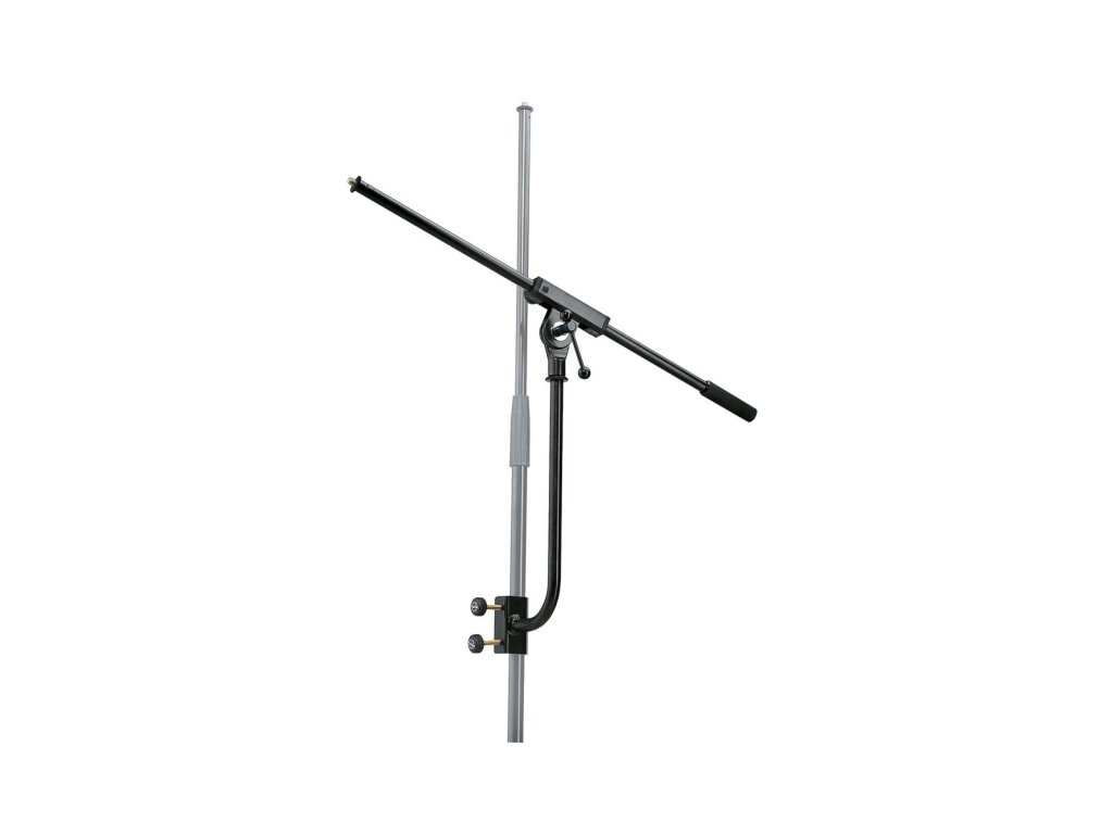 Přídavné mikrofonní rameno pro stojany s průměrem 15-30 mm. Dodává se jako komplet s otočným jednodílným ramenem se závitem 3/8". Vyrábí se v černé barvě.