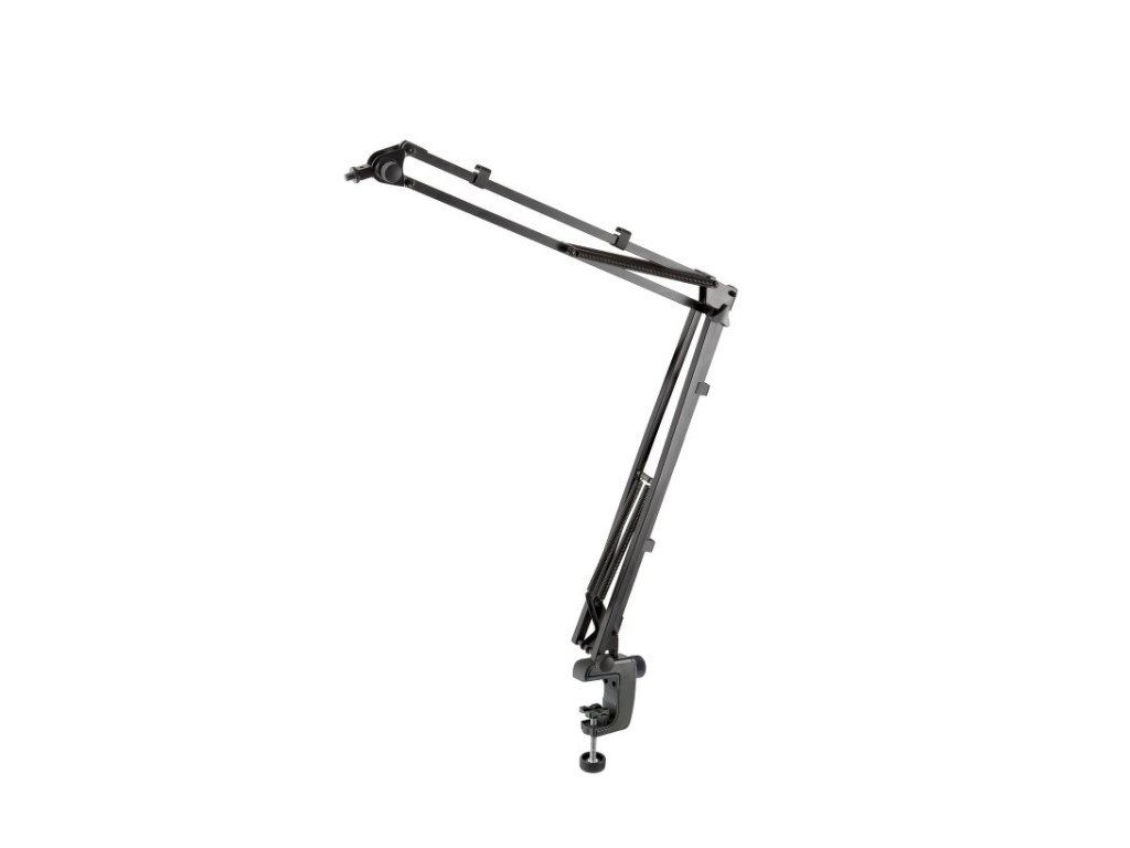 Flexibilní stolní mikrofonní rameno se závitem 3/8" nebo 5/8" pro nahrávací studia, Youtubery a broadcasting. Na rameno lze připevnit mikrofon, tablet nebo smartphone do hmotnosti 0,8 kg. Upínací rozsah svorky od 20 do 51 mm. Lze použít na hladké povrchy i trubky. Součástí balení jsou 4 kabelové svorky (kabel není součástí balení). Mikrofonní rameno může být uchyceno do stolního montážního držáku 23855 (není součástí dodávky). Vyrábí se v černé barvě.