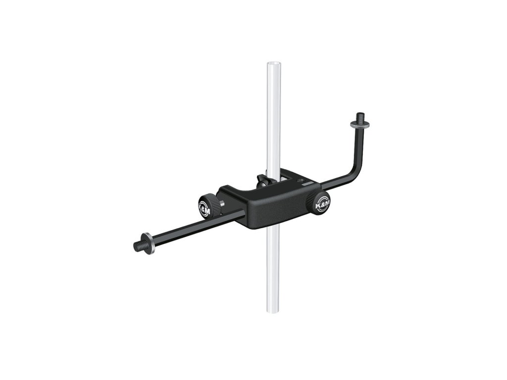 Univerzální držák se závitem 3/8" pro připevnění mikrofonů. Stabiní kovová konstrukce. Mikrofon může být připevněn vertikálně nebo v úhlu 90°. Šestihranná tyč může být také připevněna horizontálně nebo vertikálně k desce stolu. Upínací rozsah do 53 mm umožňuje svorka, kterou lze připevnit k různým povrchů. Držák se vyrábí v černé barvě.