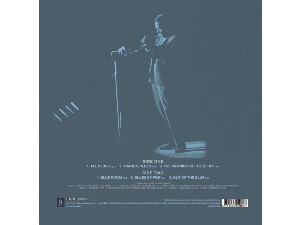 Miles Davis - All Blues Bellevue Entertainment 180g, Reference master vinyl, Limited edition, 100 % analogové album s referenční zvukovou kvalitou- Analog Experience Exkluzivní obal a příslušenství podtrhuje výjimečnost těchto nahrávek od Bellevue Entertainment Side 1: All Blues Tranes Blues The Meaninf Of The Blues Side 2: Blue Room Blues By Five Out Of The BlueDoplňkové parametry