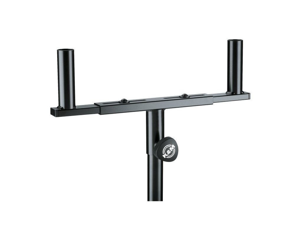 Teleskopický adaptér pro 2 reproboxy. Určený pro stojany s průměrem trubky 35 mm. Nosnost 2 x 25 kg. Vyrábí se v černé barvě.