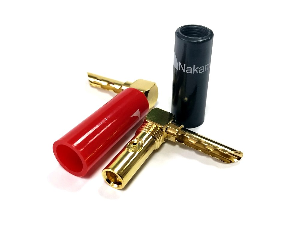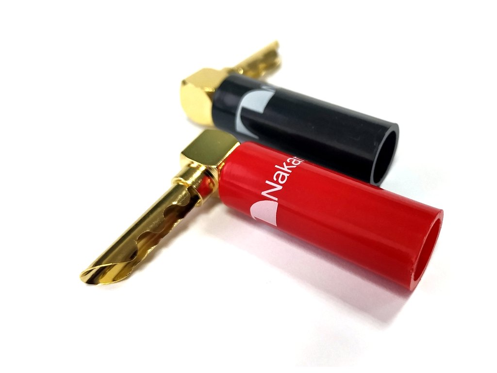 Reproduktorové úhlové banánky (konektory)Zlaceno 24K pro maximálně čistý přenos signáluDutý banánek se silnou předpruženou lamelou zajišťuje díky velké styčné ploše 100% kontakt po dlouho dobuUchycení kabelu - 2x šroubek / PVC krytkaVhodné pro kabeláž do průměru 4-5mm (včetně)PVC izolace Cena za pár barevně rozlišených konektorů Barevné provedení: červená a černáDoplňkové parametry