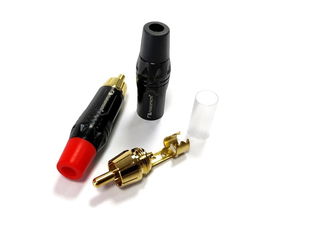 Velmi kvalitní celokovový cinch konektor - Nakamichi - RCA N0428 Konstrukce zástrčky byla navržena tak, aby zaručovala nejvyšší kvalitu a nejlepší audio / video připojení. Tělo je vyrobeno ze slitiny OFC bezkyslíkaté mědi, pozlaceno 24karátovým zlatem! 24k pozlacení pro 100% a stálý kontakt Teflonová izolace Vstup pro 6,0mm kabel Celková délka bez středního kolíku: 53,2 mm Celkový průměr: 12,7 mm Hmotnost: 20 g Cena za 1 pár barevně rozlišených konektorů Barevné rozlišení: černá a červenáDoplňkové parametry