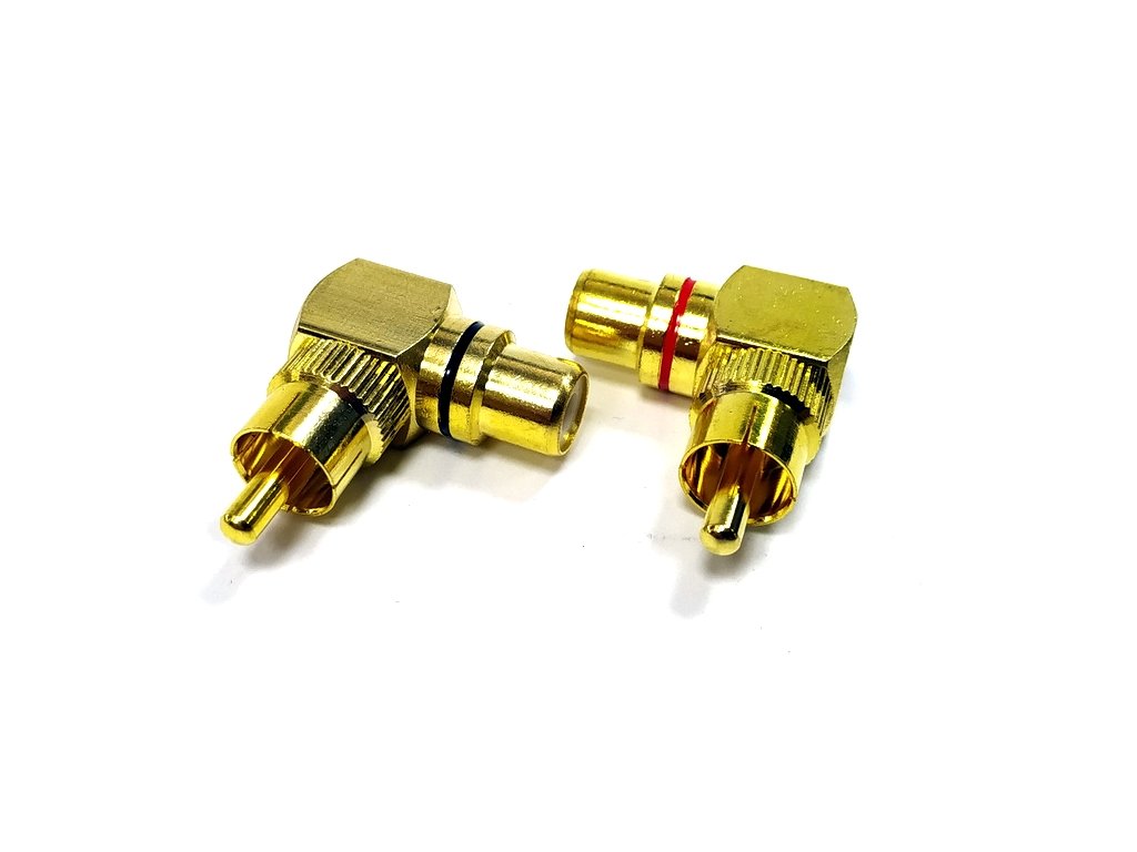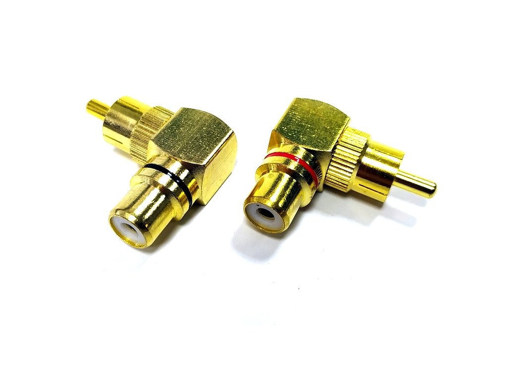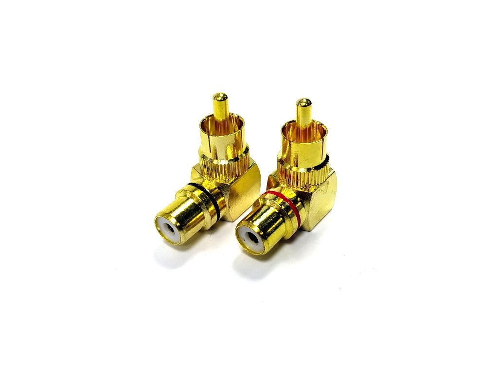 Pravoúhlá cinch RCA redukce 24K pozlacení Teflonová izolace Cena za 1 pár barevně rozlišených konektorůDoplňkové parametry