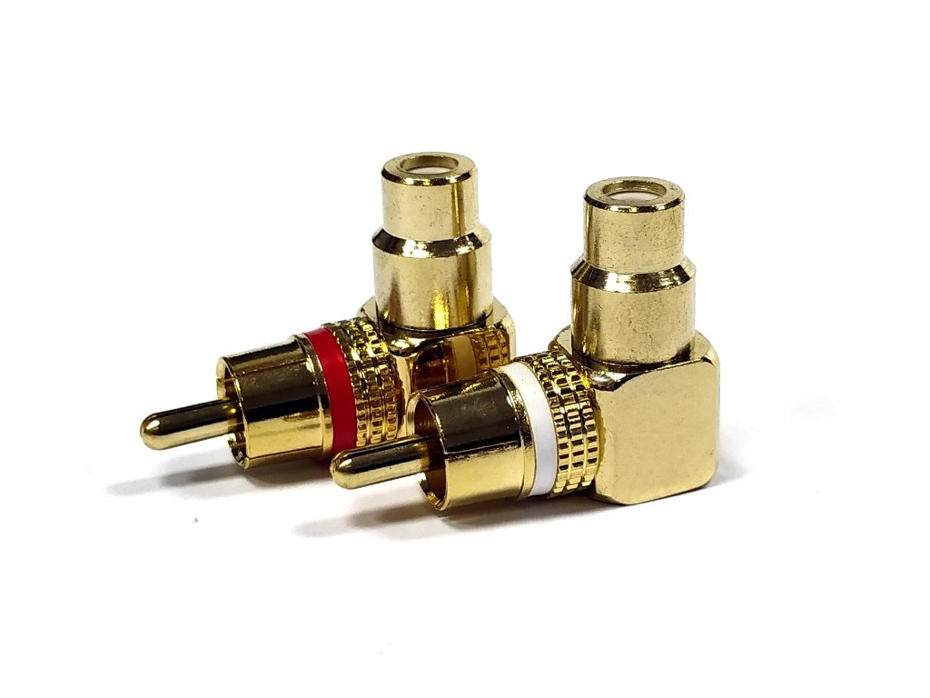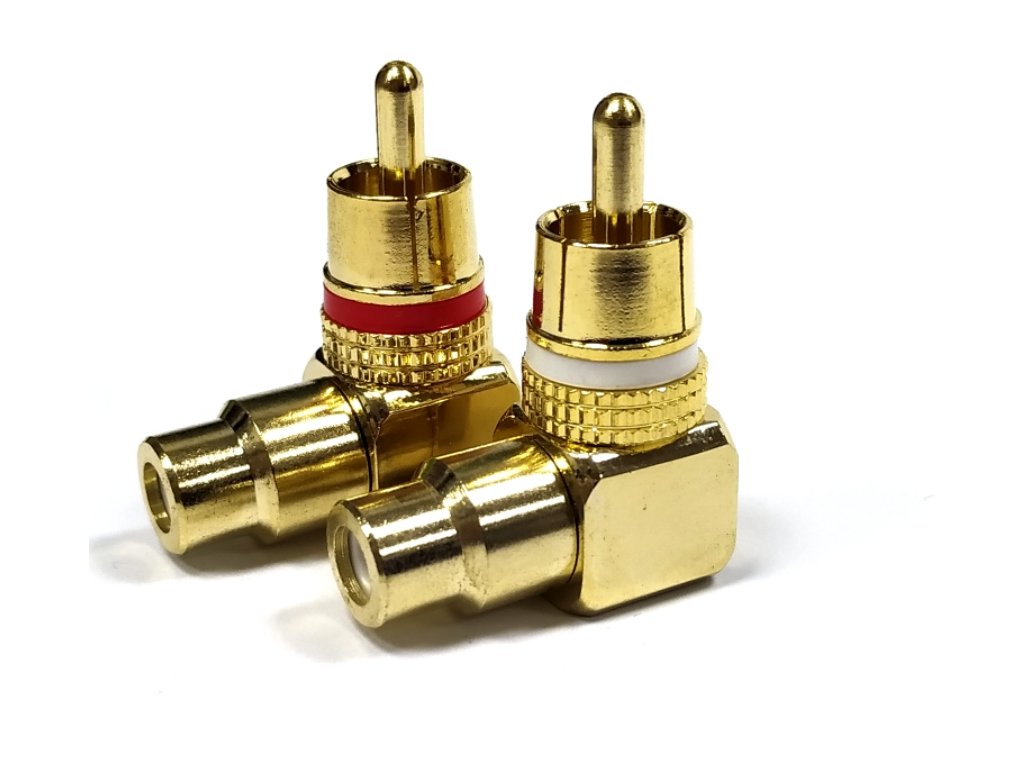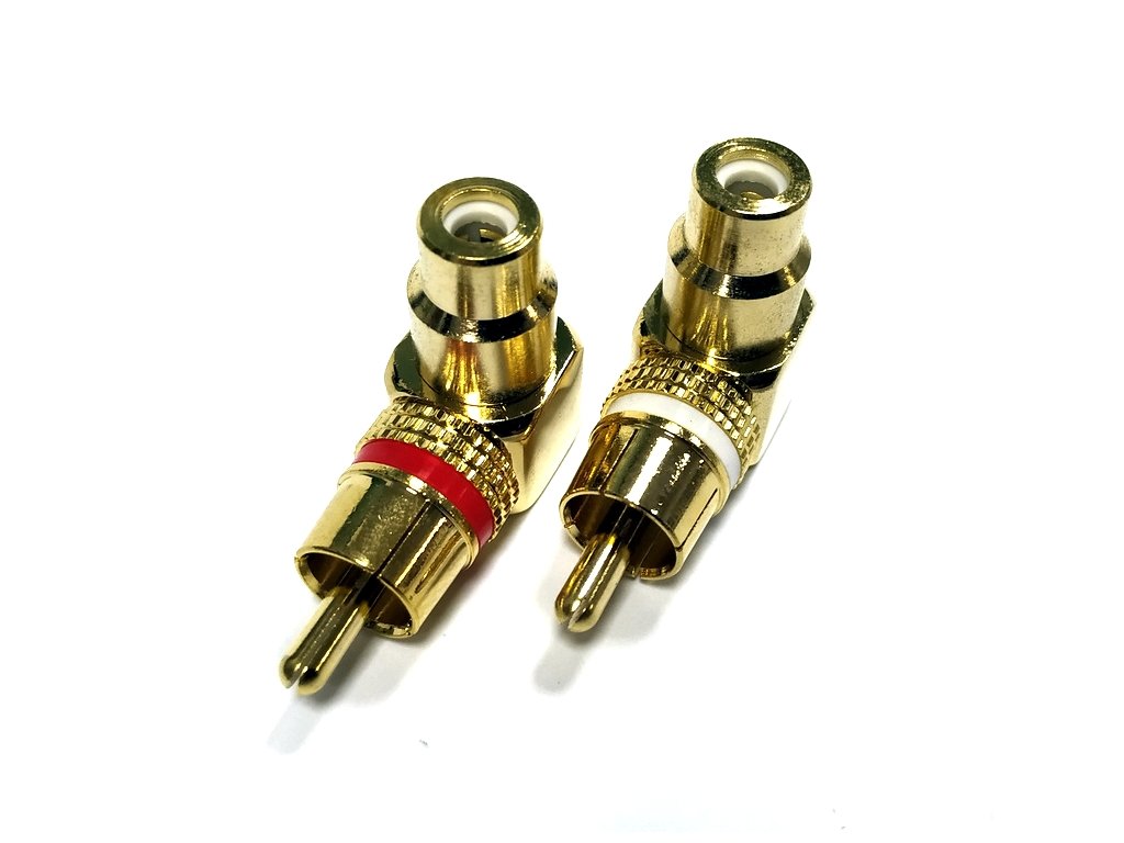 Pravoúhlá cinch RCA redukce 24K pozlacení Teflonová izolace Cena za 1 pár barevně rozlišených konektorůDoplňkové parametry