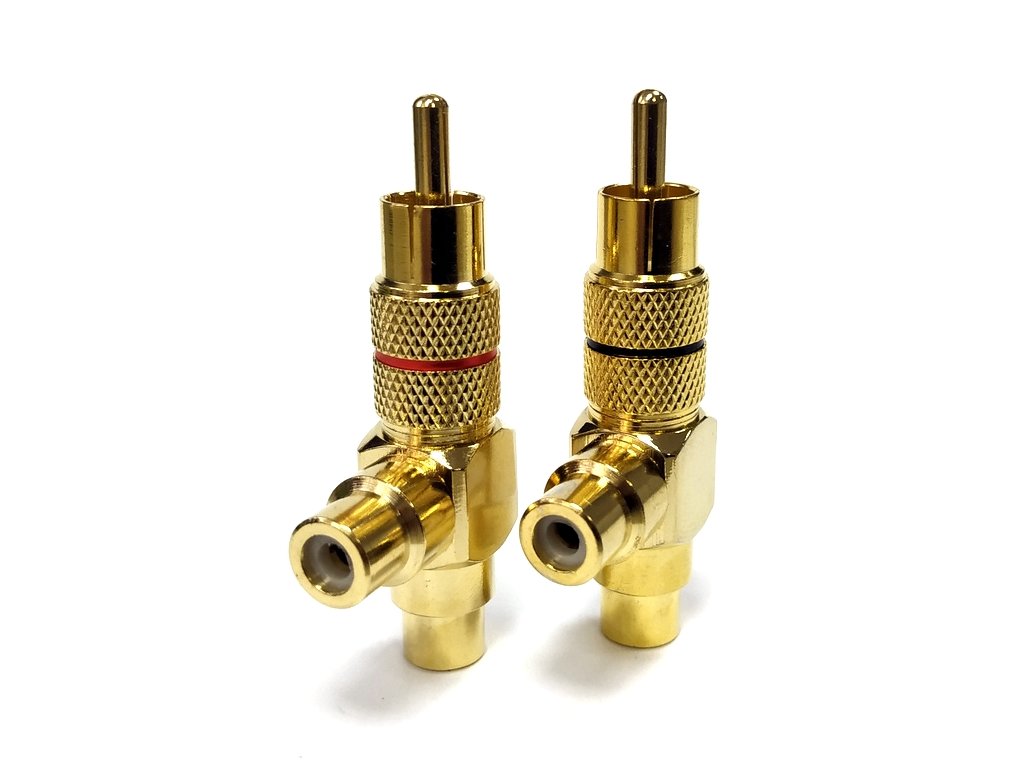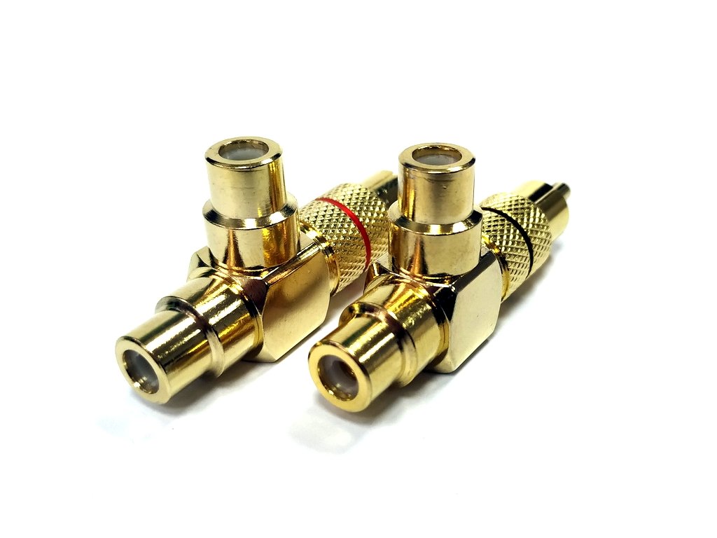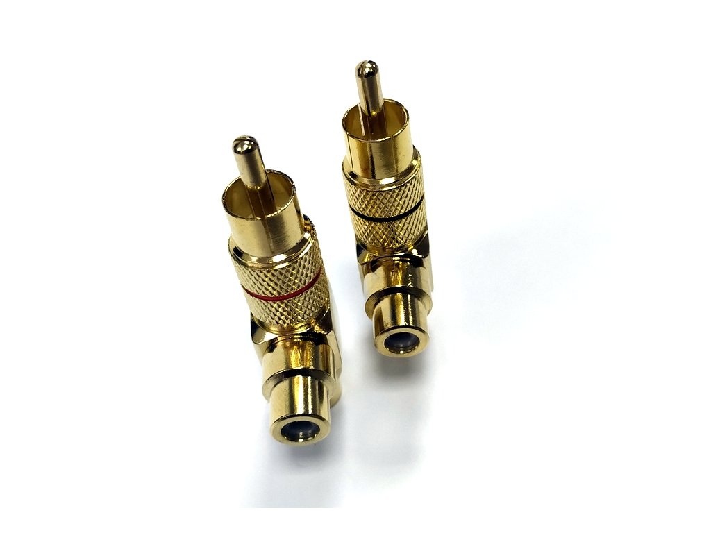 Pravoúhlá cinch RCA redukce / 2x výstup 24K pozlacení 2x výstup Kvalitní provedení Teflonová izolace Barevně rozlišeno: černá a červená Cena za pár (1+1ks)Doplňkové parametry