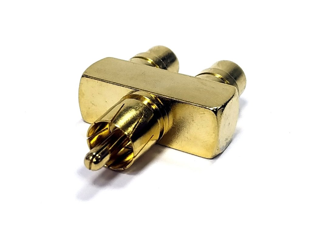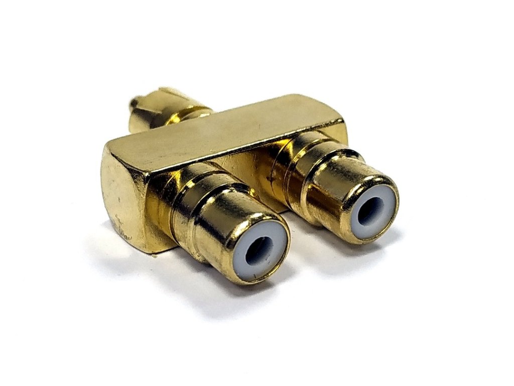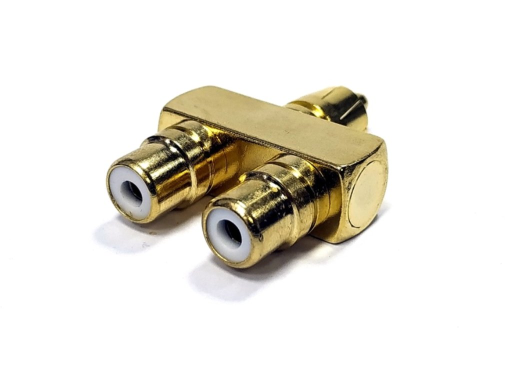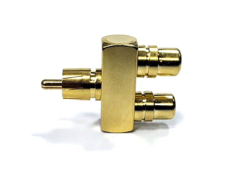 Pravoúhlá cinch RCA redukce / 2x výstup 24K pozlacení 2x výstup Kvalitní provedení Teflonová izolace