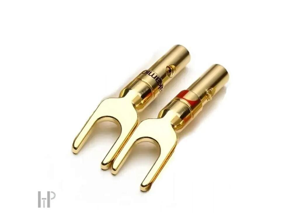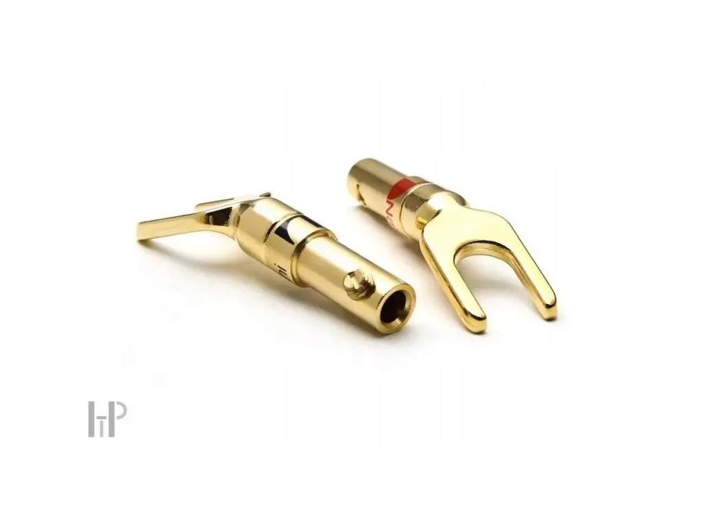 Reproduktorové vidličky (konektory) s celkovým pozlacením, které zaručuje kvalitní a stabilní kontaktZlaceno 24K pro maximálně čistý přenos signáluKonektory vyrobené z vysoce čisté mědi - nemagnetickéUchycení kabelu - 2x šroubekVhodné pro kabeláž do průměru 4-5mm (včetně)Hmotnost: 12gCena za 1 pár barevně rozlišených konektorů Barevné provedení: červená a černá Prodáváme produkt, ne obalDoplňkové parametry