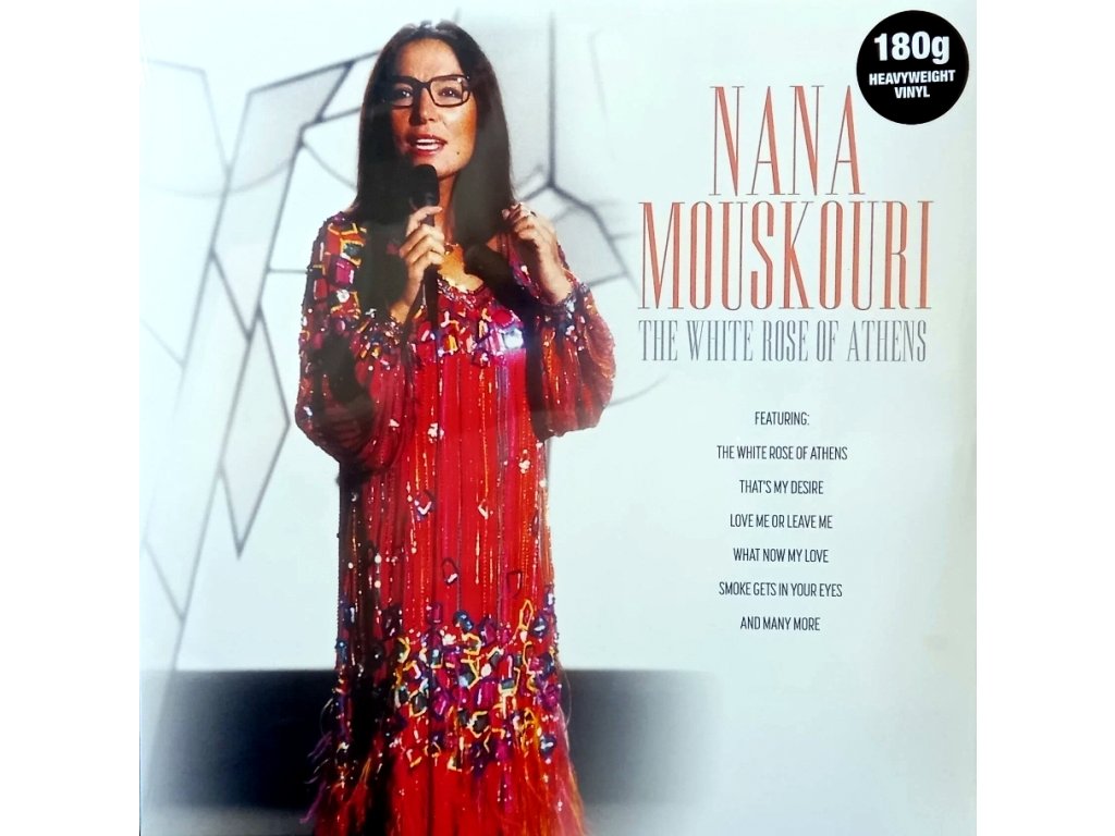 Nana Mouskouri - The White Rose Of Athens MARATHON MEDIA INTERNATIONAL - Sběratelská řada LP - Soul 180g, Reference master vinyl, Limited edition, 100 % analogové album s referenční zvukovou kvalitou- Analog Experience Exkluzivní obal a příslušenství podtrhuje výjimečnost těchto nahrávek od MARATHON MEDIA INTERNATIONAL Track-List: Side A The white rose of athens No moon at all That's my desire Love me or leave me What's good about goodbye Hold me, Thrill me, Kiss me Side B What now my love The tough of your lips These things i offer you Don't go to strangers You forgot all the words Smoke gets in your eyes Till there was you Iōánna „Nana“ Mouskouri, řecky: Ιωάννα "Νάνα" Μούσχουρη, je řecká zpěvačka, jedna z nejúspěšnějších neanglofonních umělkyň v historii populární hudby. Její hudba žánrově zasahuje i do jazzu, folku či world music.Doplňkové parametry