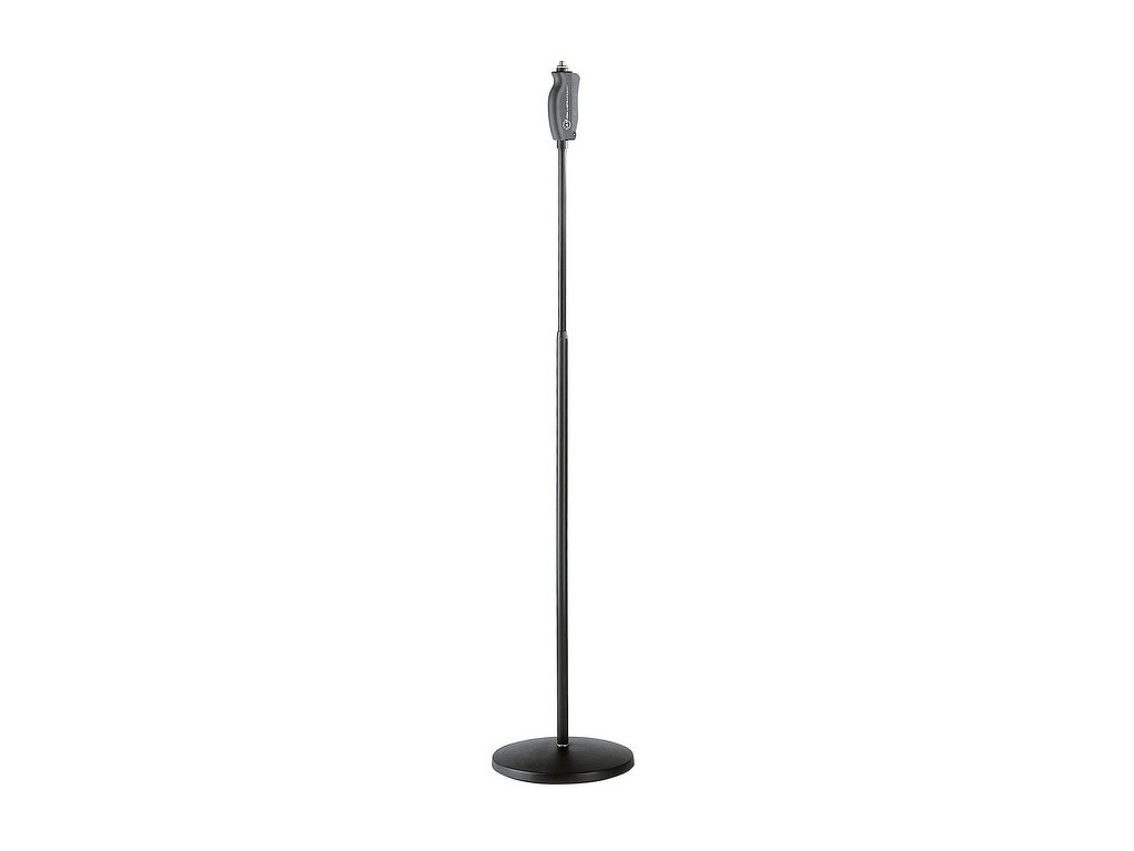 Mikrofonní výsuvný jednoruční stojan sólo s kulatým podstavcem. Výška stojanu 1060/1790 mm. Litinový podstavec je velmi stabilní a má průměr 250 mm. Vyrábí se v černé barvě.