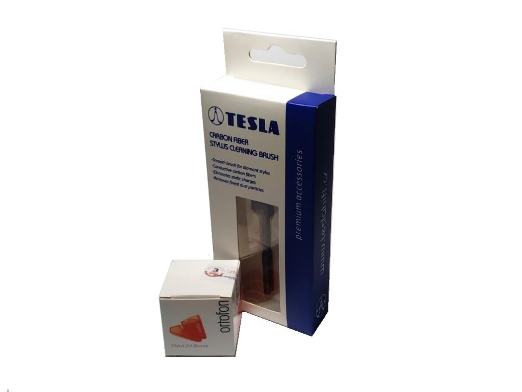 Akční set 2024: Ortofon Stylus 2M Bronze + TESLA Carbon Stylus Brush Náhradní hrot Ortofon 2M Bronze TESLA Static-Off Carbon Fiber Stylus Brush - TE06 Uhlíková vlákna s vysokou hustotou odstraní veškeré chmýří, prach nebo nečistoty. Kartáč obsahuje 1 000 mikrovláken k odstranění i těch nejmenších částic a nečistot. Pravidelným používáním karbonového kartáčku TESLA udržujete diamantový hrot přenosky v dobré kondici, čímž podporujete ničím nerušený poslech bez praskání a také prodlužujete životnost diamantového hrotu přenosky. Nedoporučujeme používat k mokrému čištění. Znečištění, kterému jsou desky i přenosky vystaveny výrazně snižuje jejich životnost a následně kvalitu zvuku. Zřejmě každý zná praskání při přehrávání gramofonových desek. Jeho příčinu často svalujeme na stáří desek. Ve většině případů se však jedná o znečištěnou desku nebo přenosku. Praskání je způsobeno nečistotami a prachem, které k povrchu desky přitahuje statická elektřina. Pro dokonalý analogový poslechový zážitek se neobejdete bez pravidelné údržby gramofonových desek a diamantového hortu přenosky, a to je komplexní proces vyžadující více přípravků. K čištění povrchů gramofonových desek slouží čistící přípravky TESLA, které dstraňují z povrchu desek nečistoty, zbavují desku elektrostatického náboje, čímž se snižuje rychlost nabalování nečistot na její povrch. To samé platí pro přenosku, čistý a kvalitní zvuk zajišťuje čistý hrot přenosky. Jakmile přestane být přehrávaný zvuk kvalitní a čistý, je nutné hrot přenosky očistit přípravky TESLA. (v případě mechanického opotřebení hrotu přenosky je nutné jej vyměnit za nový)Doplňkové parametry