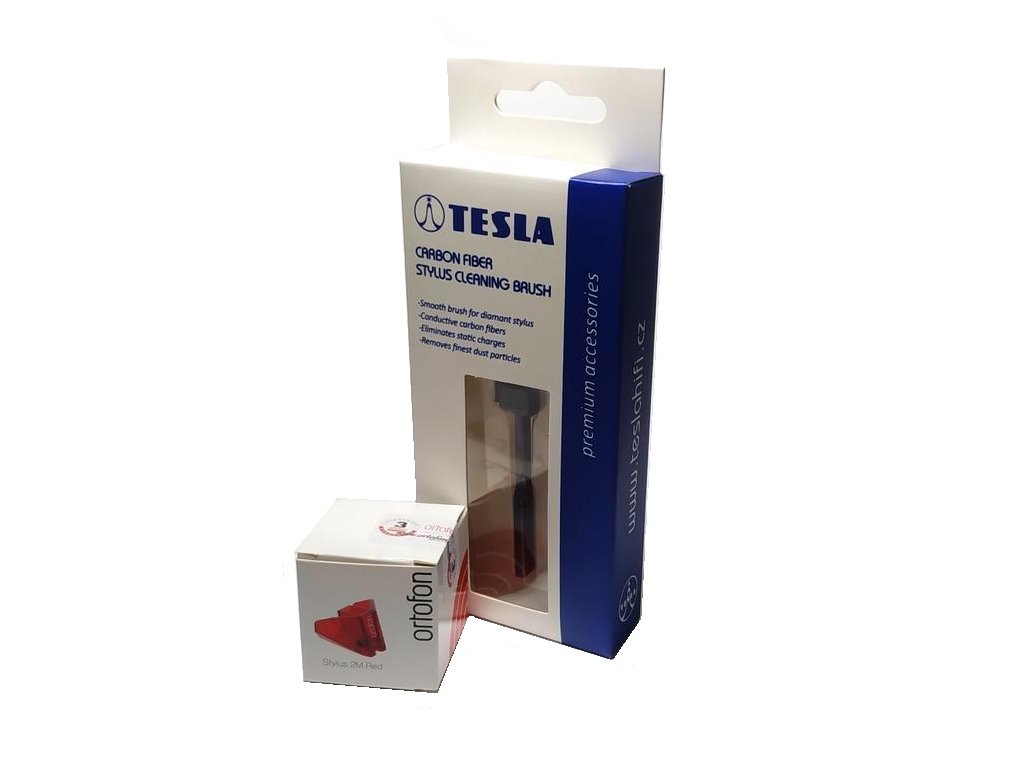 Akční set 2023: Ortofon Stylus 2M Red + TESLA Carbon Stylus Brush Náhradní hrot Ortofon stylus 2M Red Podmínkou uplatnění záruky je odborná instalace a nastavení výrobku provedená specializovanou organizací. TESLA Static-Off Carbon Fiber Stylus Brush - TE06 Uhlíková vlákna s vysokou hustotou odstraní veškeré chmýří, prach nebo nečistoty. Kartáč obsahuje 1 000 mikrovláken k odstranění i těch nejmenších částic a nečistot. Pravidelným používáním karbonového kartáčku TESLA udržujete diamantový hrot přenosky v dobré kondici, čímž podporujete ničím nerušený poslech bez praskání a také prodlužujete životnost diamantového hrotu přenosky. Nedoporučujeme používat k mokrému čištění. Znečištění, kterému jsou desky i přenosky vystaveny výrazně snižuje jejich životnost a následně kvalitu zvuku. Zřejmě každý zná praskání při přehrávání gramofonových desek. Jeho příčinu často svalujeme na stáří desek. Ve většině případů se však jedná o znečištěnou desku nebo přenosku. Praskání je způsobeno nečistotami a prachem, které k povrchu desky přitahuje statická elektřina. Pro dokonalý analogový poslechový zážitek se neobejdete bez pravidelné údržby gramofonových desek a diamantového hortu přenosky, a to je komplexní proces vyžadující více přípravků. K čištění povrchů gramofonových desek slouží čistící přípravky TESLA, které dstraňují z povrchu desek nečistoty, zbavují desku elektrostatického náboje, čímž se snižuje rychlost nabalování nečistot na její povrch. To samé platí pro přenosku, čistý a kvalitní zvuk zajišťuje čistý hrot přenosky. Jakmile přestane být přehrávaný zvuk kvalitní a čistý, je nutné hrot přenosky očistit přípravky TESLA. (v případě mechanického opotřebení hrotu přenosky je nutné jej vyměnit za nový)Doplňkové parametry