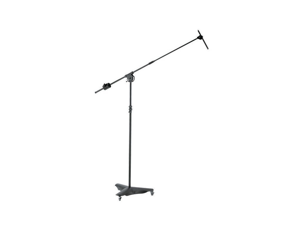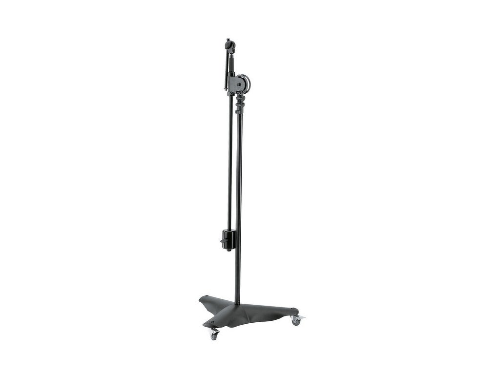Mobilní ocelový výsuvný mikrofonní stojan overhead vhodný pro studia nebo pódia. Stojan má 10 kg kovovou základnu s nízkým těžištěm a 3 uzamykatelnými kolečky. Výška stojanu 1340/2200 mm. Součástí stojanu je teleskopické mikrofonní rameno délky 1100/2000 mm s 3 kg protizávažím a upevňovacím závitem 5/8" a menší raménko se závitem 5/8" a 3/8". Vyrábí se v černé barvě.