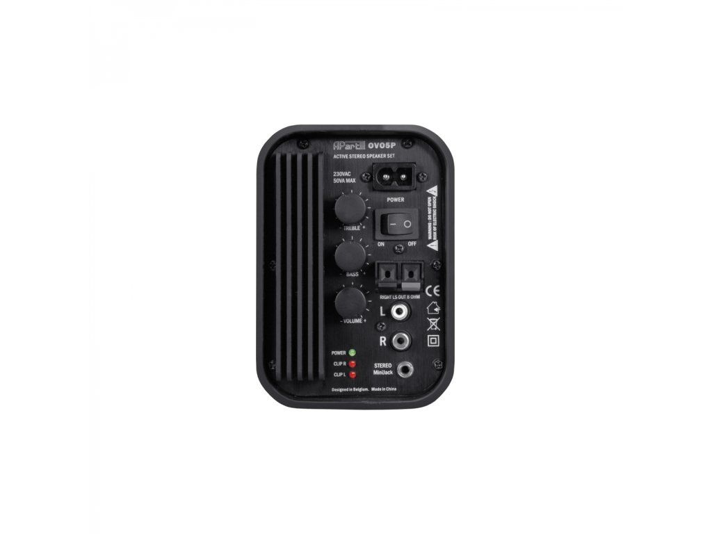 Aktivní set 2ks 2-pásmových reproduktorů s basreflexem, 5,25" + 1", 2 x 20W RMS, černé vč. úchytů. Vstupy: RCA stereo 500mV a jack 3,5mm 150mV. Tónové korekce +/- 12dB 80Hz a 12kHz.Doplňkové parametry