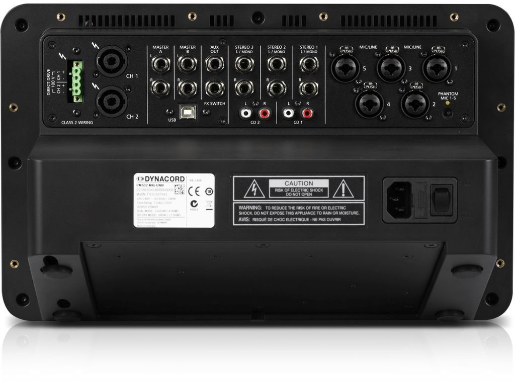 Výborně vybavený instalační mix s vestavěnými zesilovači pro menší kluby, hudební kavárny, hotelové recepce, bistra, přednáškové sály, kostely, školy a podobné aplikace, kde stačí jen připojit pár beden a mikrofon a můžete hrát. Výbava: 5 mikrofonních vstupů (XLR) , 3 linkové stereo vstupy, dva stereofonní výstupy nezávisle ovladatelné jako zóny, pomocný AUX výstup (lze použít jako další zóna, nebo pro jevištní odposlech), vypínatelné phantom +48V pro kondenzátorové mikrofony, vestavěný media player (přehrávač MP3) s USB portem na čelním panelu, dvoukanálová efektová sekce s 32 předvolbami (all, delay apod.), na všech výstupech individuální 7pásmové grafické EQ, vestavěný výkonový zesilovač 2 x 400W RMS / 2 x 600W Program (4Ohm) s LPN processingem, přepínání výkonových výstupů pro 100V vedení, možné vestavění do racku (s montážní sadou RMK 502 zabírá výšku 7U), vyrobeno v Německu.Doplňkové parametry