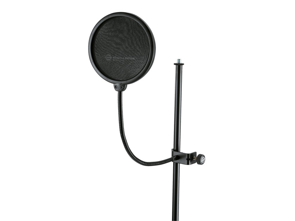 Pop filtr (ochrana) - síťka s držákem pro moderní studiovou techniku. Délka ohebného držáku 330 mm, průměr 8 mm. Průměr síťky 130 mm. Vyrábí se v černé barvě.