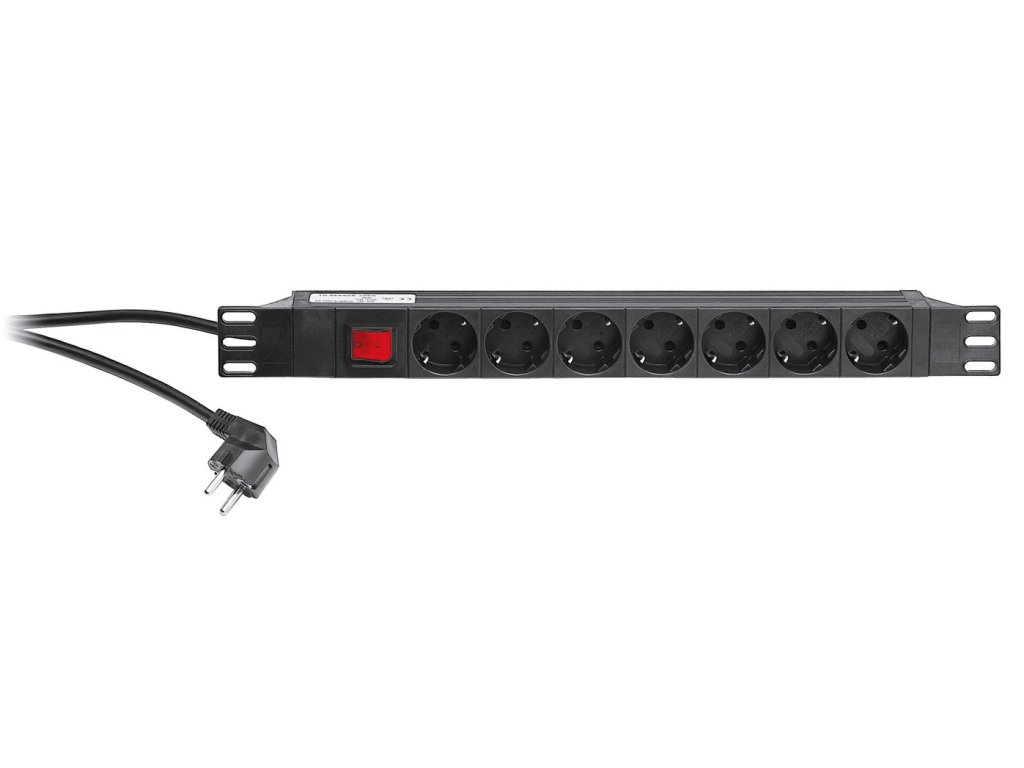 Rackový napájecí rozbočovač s vypínačem, 7 čelních zástrček, 16A 230V, kabel 2m.