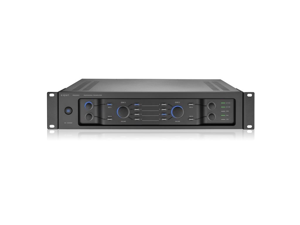 Stereofonní předzesilovač řiditelný buď z čelního panelu nebo po Ethernet či RS232, volba ze 4 stereofonních zdrojů signálu s výstupy do dvou stereofonních zón, 2 vstupy mic/line, selektivní paging (vyvolávací hlášení), prioritní vstup pro nouzové volání, režim STANDBY s nízkou spotřebou 0,5W, rackové provedení 2U do 19" s montážními úchyty, barva černá.Doplňkové parametry