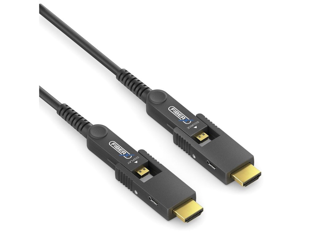 PureLink FX-I352 4K prémiový vysokorychlostní HDMI / Micro HDMI AOC optický kabel Zažijte maximální přenos videa a zvuku ve vysokém rozlišení s odnímatelným Micro HDMI/HDMI 4K Fiber Extension řady FiberX. Tento inovativní prodlužovací kabel kombinuje sílu technologie optických vláken, který poskytuje bezkonkurenční výkon a flexibilitu pro vaše audiovizuální potřeby. Vlastnosti: HDMI 2.0 - 18Gb/s pro rozlišení až 4K UltraHD 60Hz Odnímatelný konektor HDMI-A pro instalace s úzkým přístupem HDMI-A/D samec na HDMI-A/D samec s pozlacenými kontakty Konstrukce kabelu EMI/RFI - Vlákno pro AV; měď pro napájení a data, Ø 4,5 mm Technologie AOC s napájením Micro USB na straně zdroje i zobrazovače Dostupné délky: 5 m, 7,5 m, 10 m, 12,5 m, 15 m, 20 m, 25 m, 30 m, 40 m, 50 m, 60 m, 70 m, 100 mDoplňkové parametry