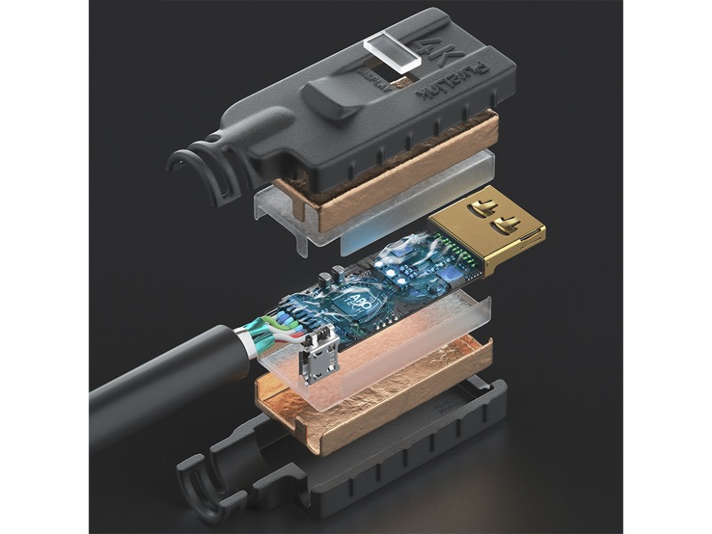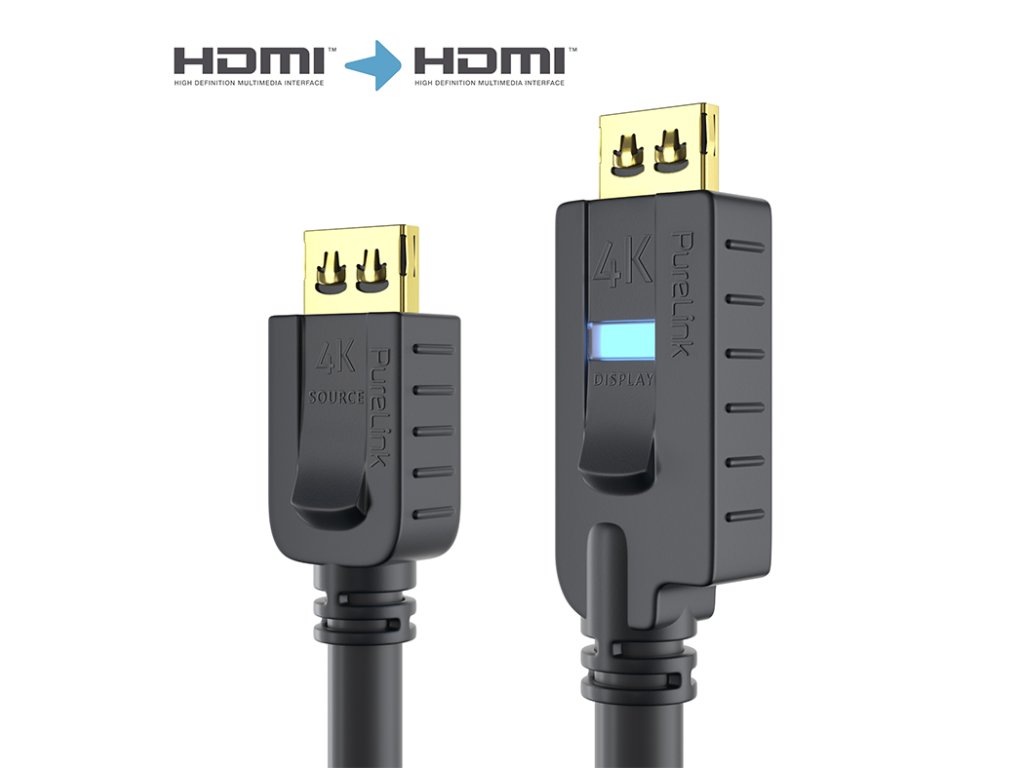 PI2010 aktivní 4K vysokorychlostní HDMI kabel 18Gb/s a plným 4K 60Hz (8bit, 4:4:4) rozlišením, délka: 7,5 m, výrobce: PureLink, model: PI2010-075 Aktivní HDMI kabel s ethernetem umožňuje přenos AV signálu do vzdálenosti až 20 metrů s rychlostí přenosu dat až 18Gb/s a plným 4K 60Hz (8bit, 4:4:4) rozlišením. 25 m a 30 m verze podporují rychlost přenosu dat až do 10.2 Gb/s pro rozlišení 4K 30Hz nebo FullHD / 1080p 60Hz. Kabel obsahuje integrovaný zesilovač signálu, napájený přímo přes 5V HDMI připojení nebo z výstupu HDMI zdroje s použitím externího micro USB napájecího adaptéru, což dělá tento kabel zvláště vhodný pro profesionální instalace v delších vzdálenostech. Obsahuje také uzamykací systém Secure-Lock-System™, trojité stínění, OFC měděné konektory a pozlacené kontakty. Vlastnosti: HDMI 2.0 – 18 Gb/s pro rozlišení až 4K UltraHD 60Hz (do délky 20 m) 10,2Gb/s pro délky 25 m, 30 m Pozlacené kontakty s PureLink SLS™ (Secure-Lock-System™) HDMI-A samec na HDMI-A samec, s PureLink APO™ OFC měděné vodiče, trojité stínění, AWG32 100% testováno pro profesionální AV instalace Kontrolka LED, micro USB port pro napájecí zdroj 5V Délky: 5 m, 7,5 m, 10 m, 12,5 m, 15 m, 20 m, 25 m, 30 mDoplňkové parametry