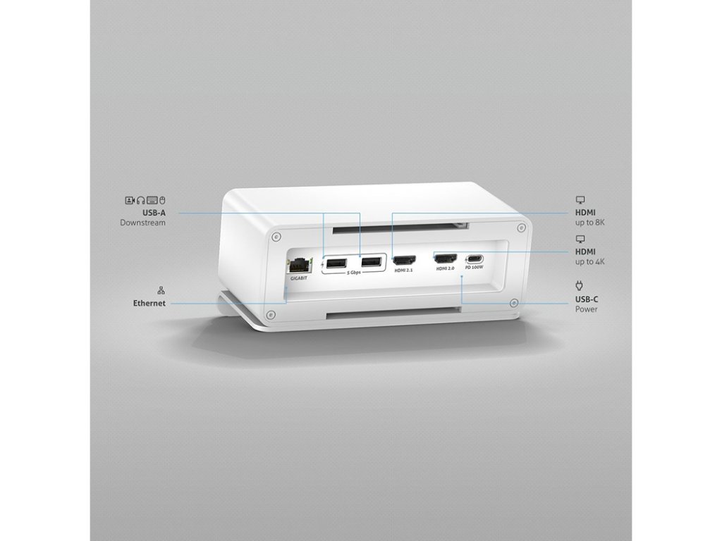 PureLink M2-ENC07 mediahub2 - USB-C dokovací stanice Mediahub2 dokovací stanice je navržena tak, aby poskytovala bezproblémové, ale stylové uživatelské prostředí. Díky svým inovativním funkcím a elegantnímu designu je tento produkt ideální pro všechny, kteří chtějí zlepšit svůj pracovní prostor. Přizpůsobte si nastavení displeje pomocí možnosti výstupu 8K/5K nebo dvou výstupů pro 4K. Užijte si bezproblémové připojení se 7slotovým stolním boxem, který je předkonfigurován s modulem dokovací stanice mediahub2 USB-C. Volně stojící zařízení se 7 sloty Předkonfigurováno s modulem dokovací stanice mediahub2 USB-C Výstup 8K/5K nebo duální výstup 4K Gigabitový Ethernet, trojité 5Gb/s USB porty a až 100W PD Elegantní celokovový povrch Dostupné barvy: černá, bílá, šedáDoplňkové parametry