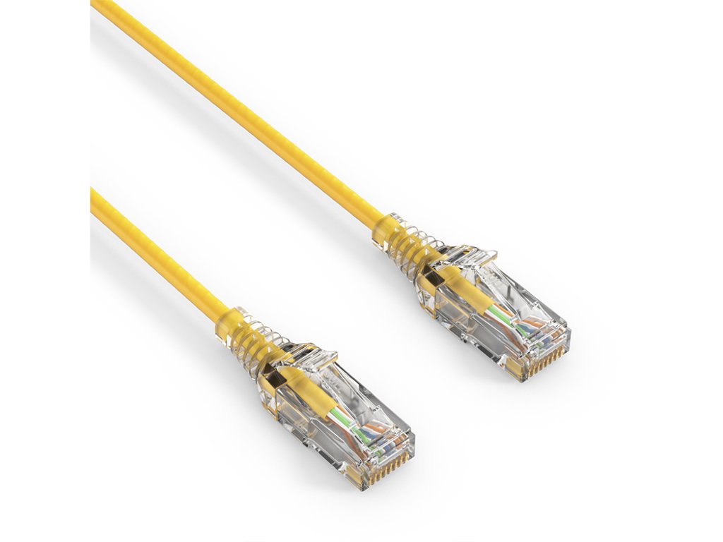 PureLink MC1503 prémiový tenký Cat6 Patch kabel, RJ45, UTP, LSZH - žlutý Cat6 s až 250MHz pro 10GBase-T Ethernet Pozlacené kontakty RJ45 samec na RJ45 samec, tenký kabel Měděné vodiče, nestíněný UTP, AWG28 Bezhalogenní (LSZH) PE povrch Délky: 0,25 m, 0,5 m, 1 m, 1,5 m, 2 m, 3 m, 5 mDoplňkové parametry