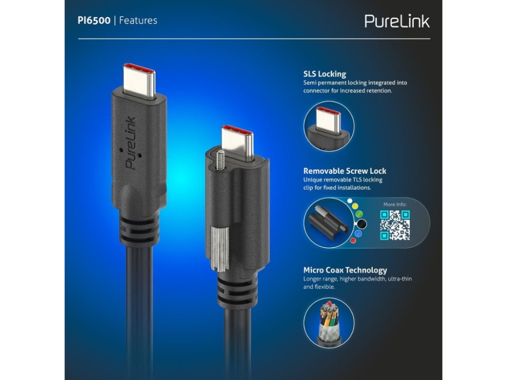 PI6500 PureInstall MicroX4 – Pasivní USB4 Gen2 USB-C kabel Tento kabel PureInstall MicroX4 typu C využívá pokročilou technologii mikrokoaxiálních kabelů, která nabízí lepší přenos signálu ve srovnání s tradičními kroucenými páry. Plně pasivní konstrukce tohoto kabelu eliminuje potřebu aktivních čipových sad, což umožňuje kompatibilitu i v délkách až 5 metrů bez rizika narušení integrity signálu nebo konfliktů zařízení. Konstrukce mikrokoaxiálního kabelu také zvyšuje mechanickou robustnost a flexibilitu a podporuje odolné instalace v náročných AV prostředích. Integrovaný systém Secure-Lock-System (SLS) poskytuje spolehlivé připojení USB-C.V kombinaci s klipem TLS (Tru-Lock-System) šroubovatelným, barevně kódovaným zamykacím mechanismem zajišťují kabely MicroX4 stabilní instalace v pevných sestavách, jako jsou racky, pódia nebo systémy signage. Tento kabel je vhodný pro vysoce propustná data, video a napájení a je určen pro aplikace od hardwaru montovaného do racku až po prostředí BYOD a konferenční řešení. Vysokorychlostní přenos dat: USB4 Gen2x2 podporuje datové rychlosti až 20 Gb/s. Pasivní konstrukce kabelu zajišťuje zpětnou kompatibilitu se zařízeními USB 3.x a 2.0, což umožňuje bezproblémovou integraci do stávajících systémů bez nutnosti aktivní elektroniky nebo opakovačů.Zvýšená integrita signálu: Postříbřené měděné vodiče (SPC) snižují elektrický odpor a jsou optimalizovány pro vysokofrekvenční přenos. To zajišťuje stabilní signály na delší vzdálenosti a snižuje chvění v AV aplikacích s vysokým rozlišením.Systém dvojitého zamykání: Vodiče USB-C jsou vybaveny integrovaným systémem Secure-Lock-System (SLS) pro polopermanentní připojení s pevností 25 N. Pro ještě větší bezpečnost až do 80 N lze přidat volitelnou šroubovatelnou a odnímatelnou sponu TLS (Tru-Lock-System).Ochrana proti elektromagnetickému rušení: Mikrokoaxiální konstrukce s plným stíněním a přesnou regulací impedance je navržena tak, aby minimalizovala elektromagnetické rušení (EMI) v elektricky zašuměných prostředích, jako jsou elektrická vedení nebo zdroje rádiových vln.Napájení a video přes jeden kabel: Integrované e-markery EPR (Extended Power Range) podporují USB PD 3.1 až do 240 W s 48 V / 5 A, což je ideální pro napájení náročných zařízení, jako jsou mini-PC nebo dokovací stanice. DP Alt-Mode podporuje rozlišení videa až 8K při 30 Hz nebo 4K při 144 Hz pro vysoce výkonné zobrazovací sestavy.Praktické řešení pro kombinovaný přenos signálu a napájeníTento kabel MicroX4 USB-C je ideální volbou pro AV profesionály, kteří vyžadují vysokou datovou propustnost, dlouhé kabely a sjednocený přenos dat, videa a napájení. Jeho pasivní konstrukce a kompatibilita zaručují kompatibilitu i se zařízeními, která ještě nejsou na trhu. Rodina MicroX4 - Kvantový skok v konektivitěVzhledem k tomu, že USB-C i nadále definuje konektivitu napříč všemi zařízeními, řada PureInstall MicroX4 se odlišuje precizně navrženými komponenty a nejmodernějšími inovacemi. Je navržena tak, aby splňovala nejvyšší možné standardy konektivity, a zajišťuje spolehlivý výkon v celém spektru požadavků na napájení, zvuk, video a data – na vzdálenosti, které se dříve považovaly za nemožné. Pasivní kroucená dvojlinka byla dlouho považována za páteř kabelové technologie. Je spolehlivá, dobře známá a široce používaná v mnoha odvětvích. Nyní jsme však dosáhli digitálního skleněného stropu, který omezuje dosah a spolehlivost USB-C na velmi krátké vzdálenosti. Technologie mikrokoaxiálního kabelu je klíčem k překonání těchto omezení, protože nabízí vynikající útlum signálu a snížené přeslechy, stejně jako mnohem robustnější přenos signálu s minimálními odrazy nebo ztrátami. Fyzikální vlastnosti koaxiálních kabelů poskytují další výhody. Jejich struktura umožňuje výrazné snížení spotřeby mědi, díky čemuž je konečný produkt mnohem pružnější na dotek a zároveň vysoce odolný vůči ohybu což zvyšuje jeho trvanlivost. Bez přehánění lze říci, že mikro koaxiální kabely ohlašují novou éru konektivity.Doplňkové parametry