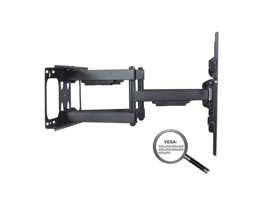 PureLink PM-FM51-600 polohovací držák na televizi PureMounts® - LED/LCD TV držák se vzdáleností od stěny od 69 až do 635 mm. Sklopný 5°/-15°. Otočný 60°/-60°. Maximální nosnost 65kg. VESA až do 600x400. Sklopný: 5° až do -15°, otočný 60° do -60° (v závislosti na vzdálenosti od stěny a šířce obrazovky) Vzdálenost od stěny: 69 mm až do 635 mm Maximální nosnost: 65 kg Podporuje VESA 200x200, 300x300, 400x200, 400x400, 600x400 pro displeje s úhlopříčkou 81cm (32") až do 165cm (65")Doplňkové parametry