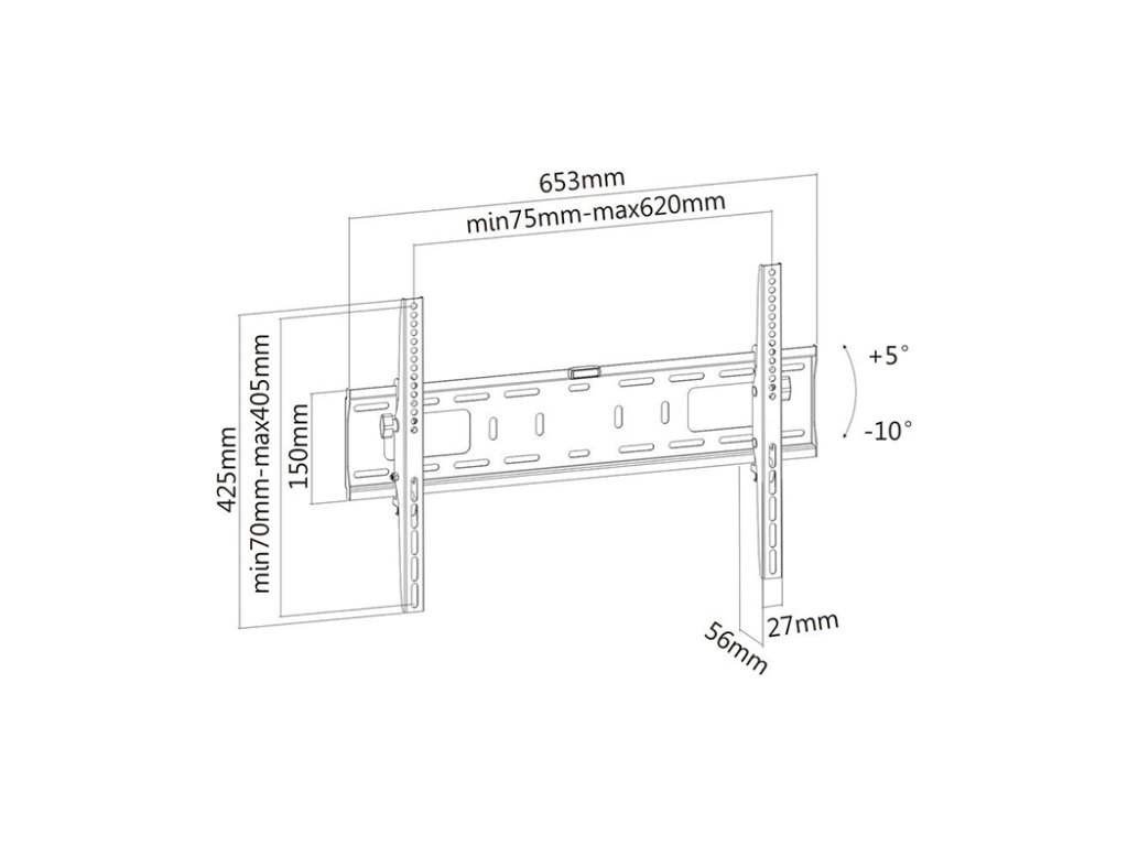 PureLink PM-T600 polohovací držák na televizi PureMounts® LED/LCD TV držák, sklopný: 5°/-10°, vzdálenost od stěny: 56 mm, nosnost do 50 kg, VESA 200x200,400x200,300x300,400x400,600x400Zažijte maximální pohodlí při montáži televizoru s držákem LED/LCD TV PureMounts®. Tento všestranný držák nabízí řadu funkcí pro vylepšení vašeho zážitku ze sledování. Sklopný: 5° do -10° Vzdálenost od stěny: 56mm Maximální nosnost: 50kg Podpora VESA 200x200, 300x300, 400x200, 400x400,600x400 pro displeje s úhlopříčkou od 81cm (32") až do 165cm (65")Doplňkové parametry