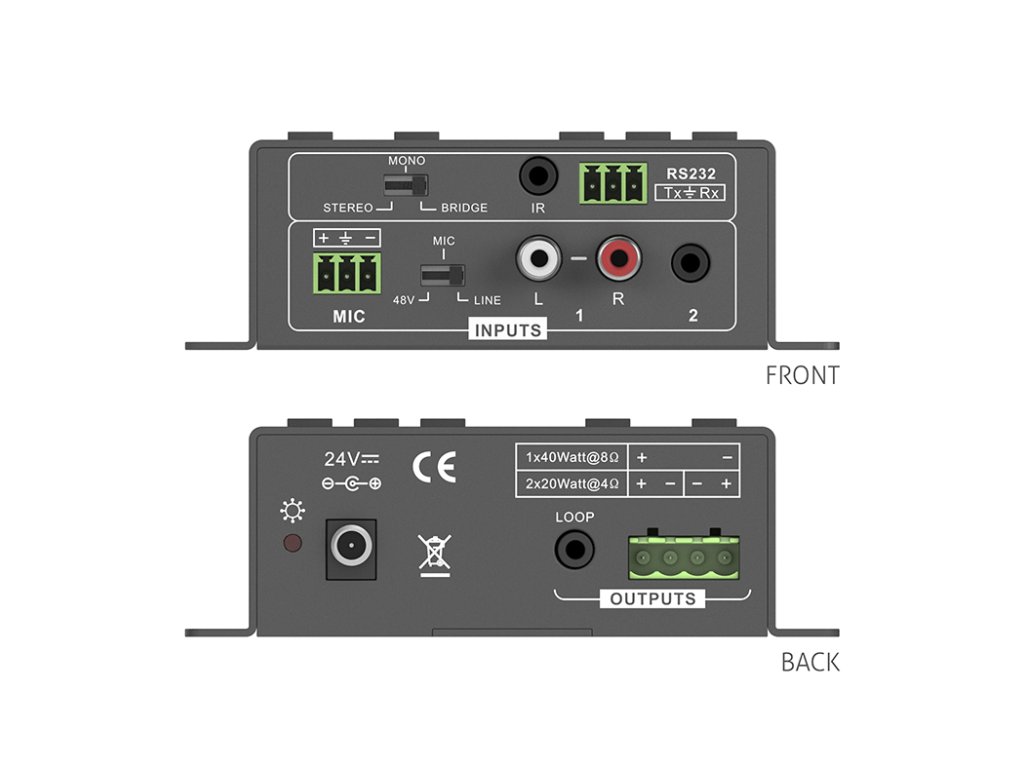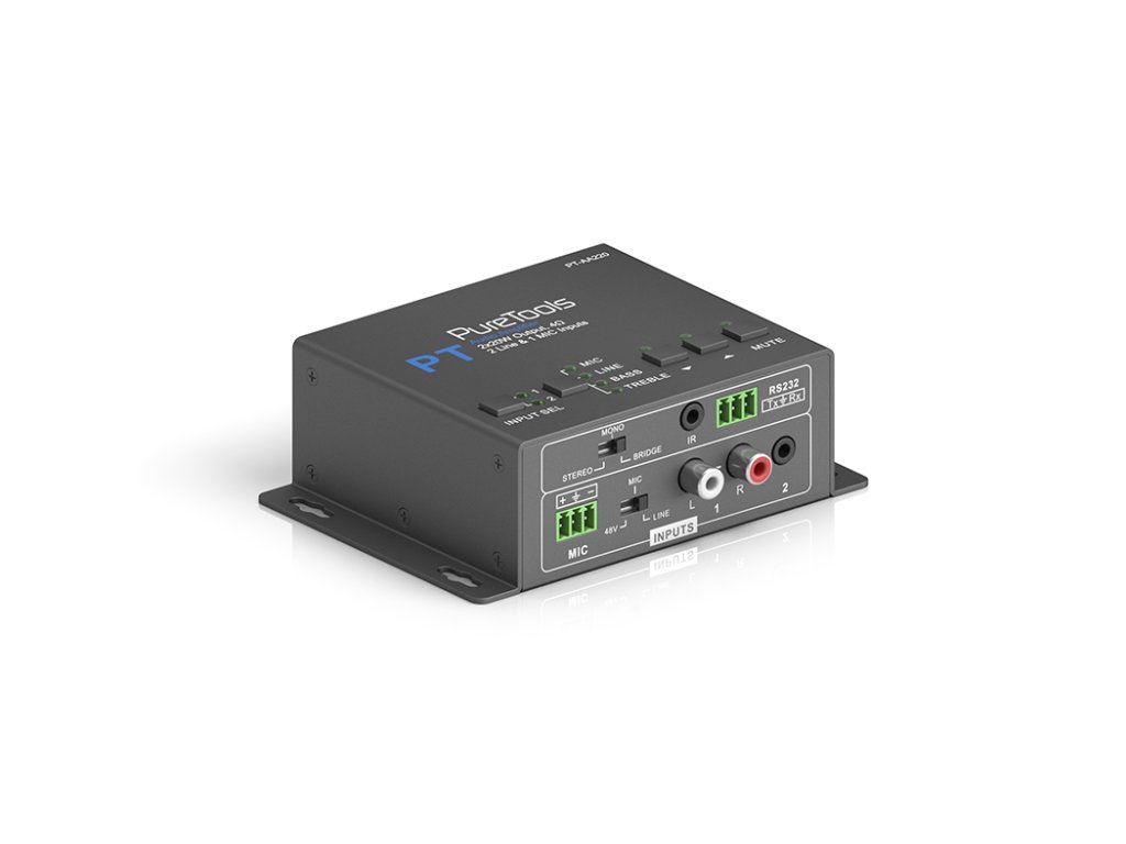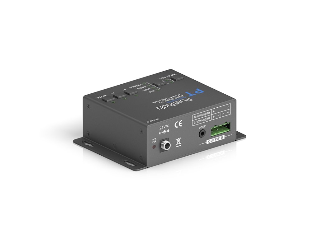 PureLink PT-AA220 2x20W (třída D) 4/8 Ω audio zesilovač PT-AA220 je kompaktní digitální zesilovač ideální pro malé až středně velké zasedací místnosti nebo přednáškové sály. Díky flexibilní modulární konstrukci je kompaktní a výkonný. Vylepšené funkce poskytují vysoce kvalitní reprodukci zvuku. Zesilovač PT-AA220 umožňuje plnou škálovatelnost, což znamená, že několik zesilovačů PT-AA220 může poskytnout stejný výkon a kvalitu jako mnohem větší audio systém, ale za zlomek nákladů. Vysoce výkonný zesilovač třídy D, 40W mono (8Ω) nebo 2x20W stereo (4Ω) 2 analogové audio vstupy, mikrofonní vstup s 48V fantomovým napájením Linkový loop výstup pro kaskádování nebo integraci více zesilovačů Funkce automatického ztlumení a šumu, funkce duálního mono Antistatické poudro bez ventilátorů, ovládání přes přední a horní panel, IR a RS232Doplňkové parametry