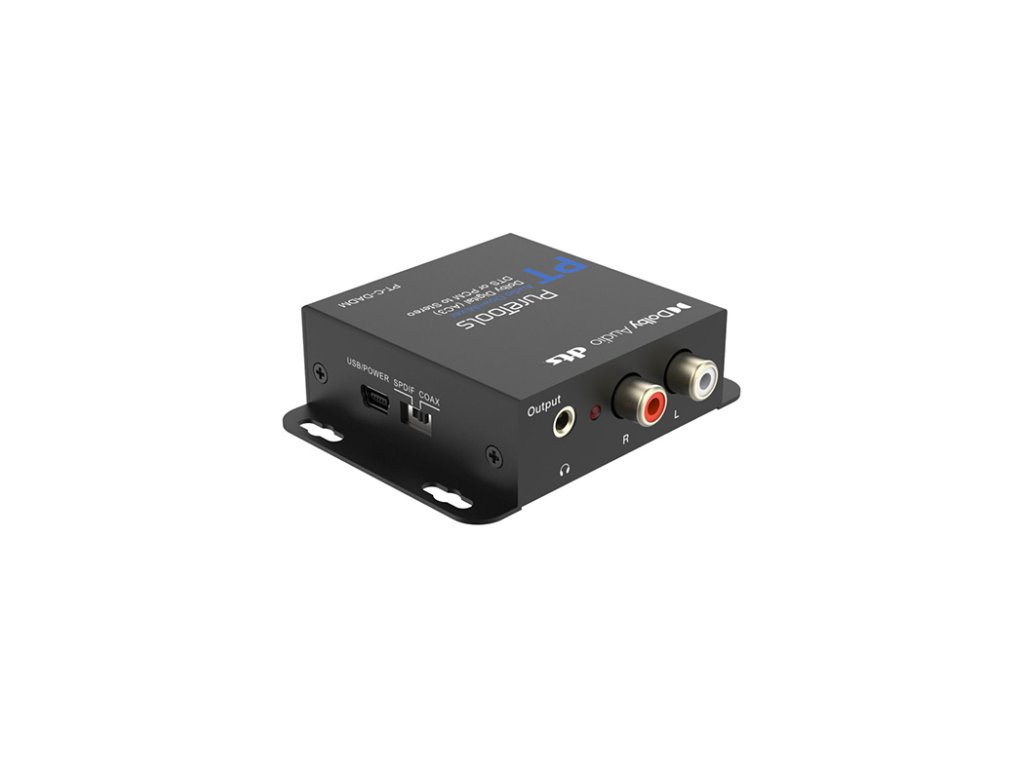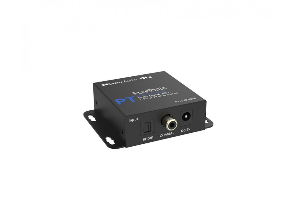 PureLink PT-C-DADM downmixer Dekóduje Dolby Digital (AC3), DTS nebo PCM digitální audio na stereo Plná podpora pro vzorkovací frekvence PCM 32 kHz, 44.1 kHz, 48 kHz, 88.2 kHz, 96 kHz, 176.4 kHz, 192 kHz Přizpůsobitelný potřebám systému – vstup pro Toslink nebo COAX, výstup pro RCA nebo 3.5 mm a volba vstupního napájení Jednoduchý provoz "plug and play" bez nutnosti ovladače Plně licencovaná podpora pro dekódování kanálů Dolby Digital 5.1 a kanálů DTS-ES 6.1Doplňkové parametry