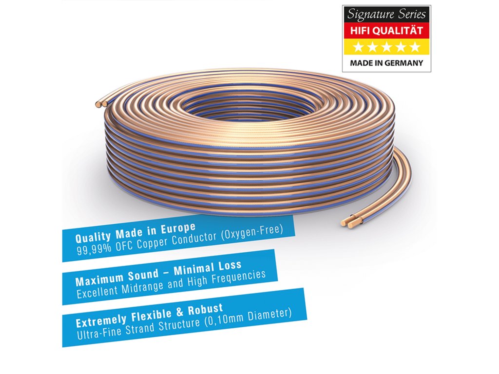 PureLink SE-SP020 2 x 4 mm² průhledný repro kabel - 99,9% OFC měď Kabely jsou vyrobeny z 99.99% OFC mědi, mají skvělé vlastnosti přenosu a jsou zkonstruovány podle vysokých standardů kvality v Německu. OFC měděné kontakty poskytují flexibilitu a nízký odpor. Vlastnosti: Kvalitní HiFi reproduktorový kabel (99.99% bezkyslíková měď OFC) Prémiový repro kabel: průřez (2 x 4 mm²) - ultrajemná struktura pramenů (0.10mm průměr) - perfektní kombinace pro minimální ztráty a maximální kvalitu zvuku "Vyrobeno v Německu": extrémně flexibilní kabel díky ultrajemným pramenům a flexibilnímu plášti kabelu Ideální pro vaše HiFi komponenty - skvělé pro zesilovače a reproduktory Průhledný povrch a modré značení Dostupné délky: 10m / 15m / 20m / 25m / 30m / 50m / 100mDoplňkové parametry