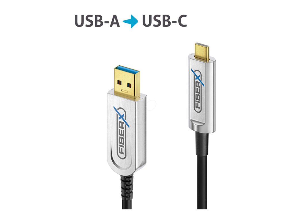 PureLink FX-I630 USB v3.2 USB-C / USB-A AOC optický kabel Vlastnosti: USB 3.2 (Gen 2x1) – 10 Gb/s rychlost přenosu dat Pozlacené konektory, jednosměrné USB-C (samec) na USB-A (samec), celokovový povrch Hybridní kabel Prevence před EMI, nízký útlum Není potřeba externího napájení USB-A host, USB-C zařízení Délky: 3 m, 5 m, 7,5 m, 10 m, 12 m, 15 m, 20 m, 25 m, 30 m, 35 m, 40 m, 50 mDoplňkové parametry