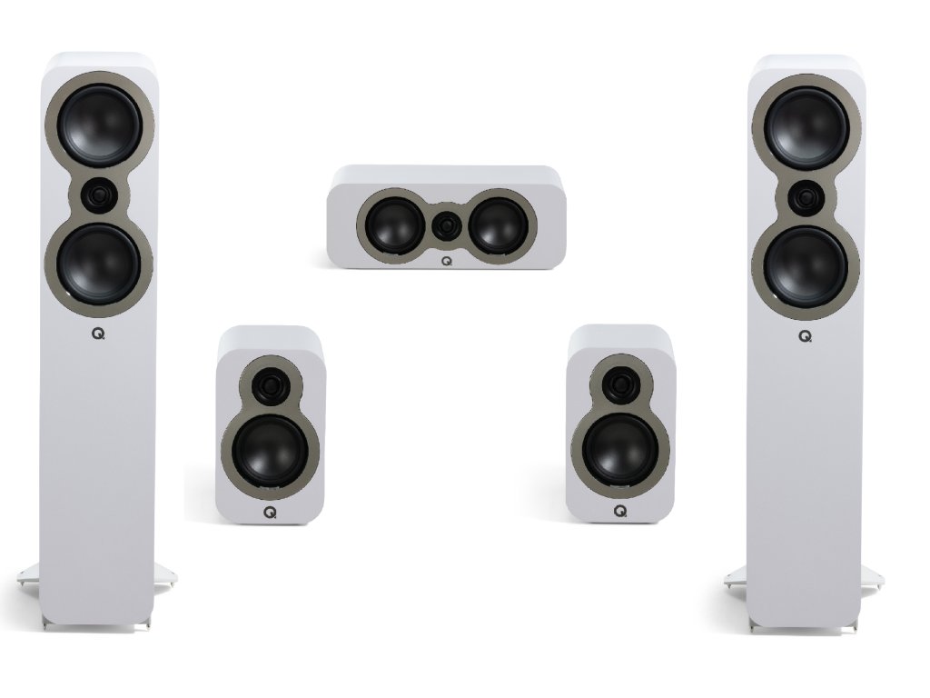 Plnohodnotná kino sestava reprosoustav Q Acoustics série 300C, složená ze sloupových 3050C, jednoho páru 3020C a centrální 3090C. Spolehlivě zazvučí středně velké místnosti. QA3050C jsou také excelentní pro stereo poslech. Sestavu je možné doplnit některým z aktivních subwooferů Q Acoustics.Doplňkové parametry