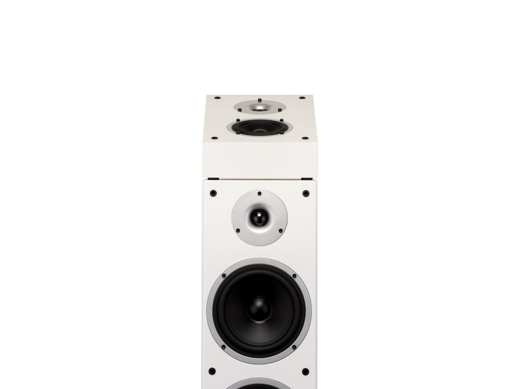- Barevné provedení povrchové úpravy je také dokonale sladěno s ostatními designy řady Raptor, tedy klasickými barvami - bílou a černou, což podtrhuje elegantní vzhled a nenarušuje estetiku poslechové místnosti.