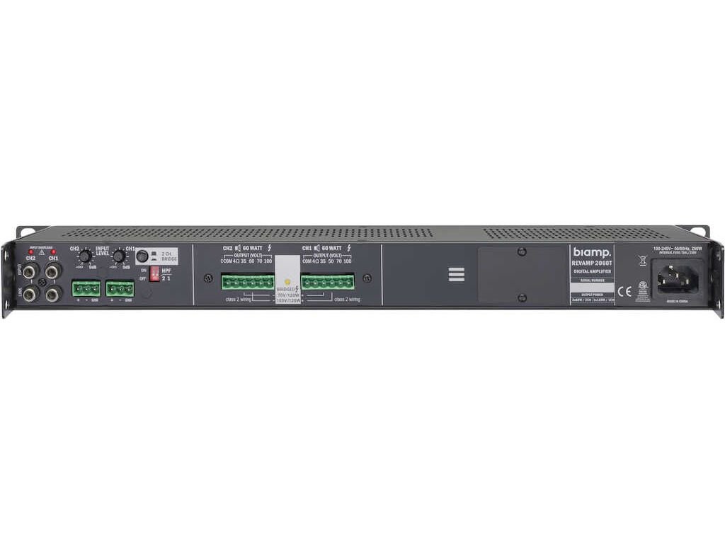 Výkonový zesilovač 2x60W / 100V nebo 4 Ohm, možnost můstkového zapojení 1x120W / 100V nebo 8 Ohm, třídy "D" s vysokou účinností přes 80%, galvanicky oddělené výstupy osazené transformátory, spínaný zdroj, ochranný procesor APC, pasivní chlazení, 1U.Doplňkové parametry