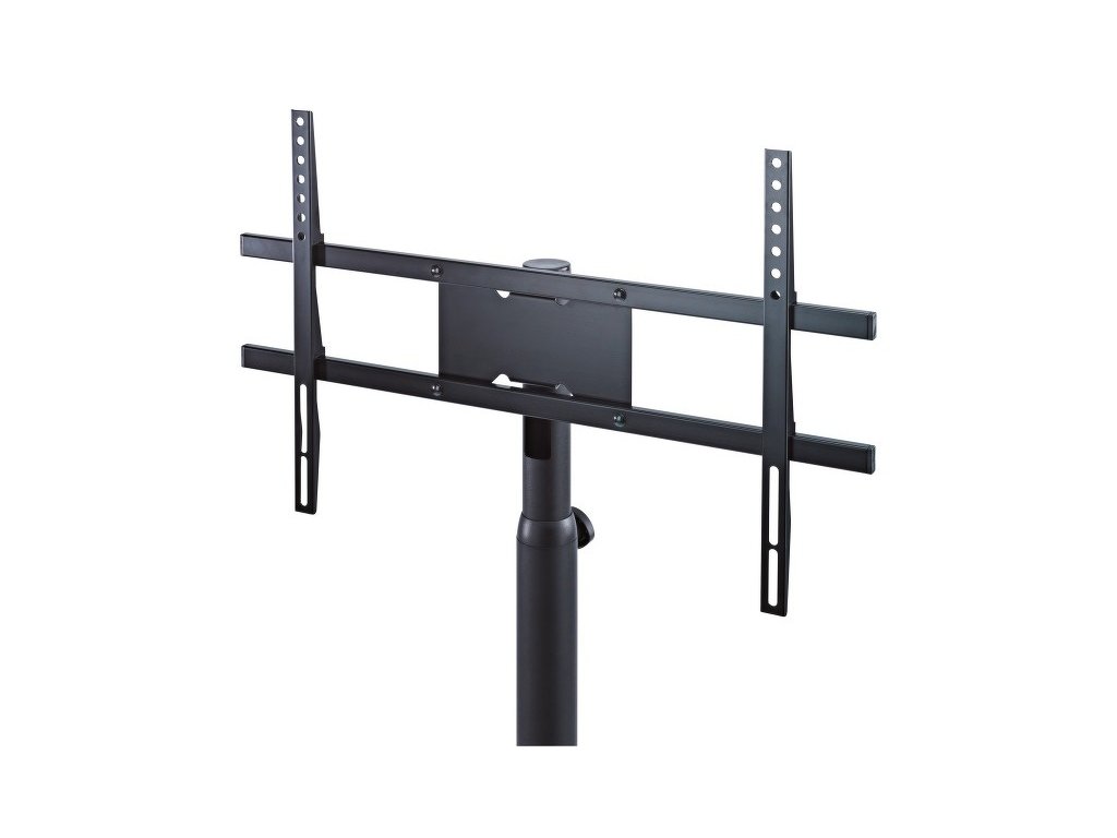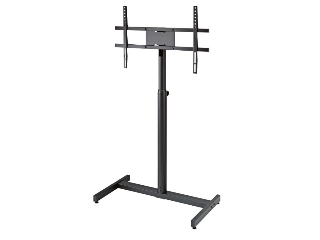 Stabilní ocelový stojan pro LCD monitory. Výška 1100/1650 mm. Nastavení výšky po krocích pomocí ergonomického přužinového upínacího kolíku. Dodávané montážní příslušenství umožňuje standardní montáž VESA pro LCD monitory od 42"do 65". Skryté interní vedení kabelů. Integrované nastavitelné nožičky stabilizují stojan na nerovném povrchu a zajišťují jeho stabilitu. Vyrábí se v černé barvě.
