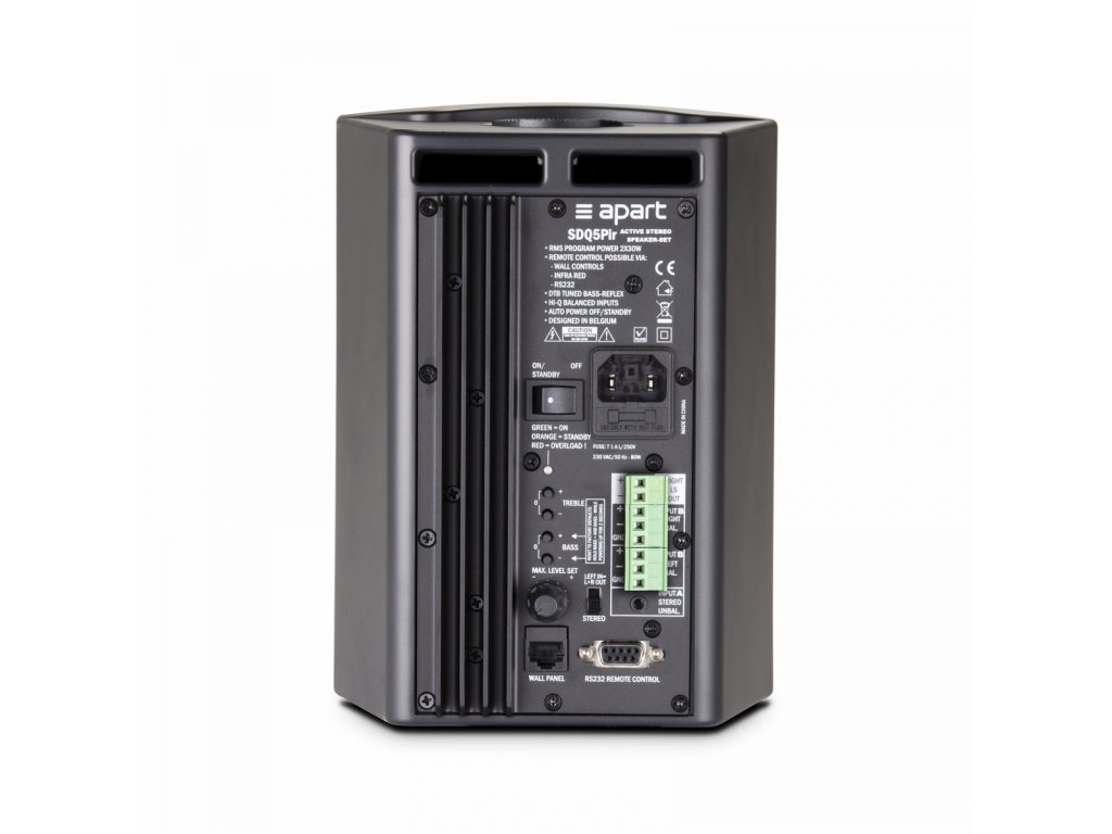 Aktivní set 2ks dvoupásmových reprosoustav v černé barvě, optimálně pro malé prezentace nebo pro umístění vedle projekčního plátna či velkoplošné TV. Set se skládá z 1ks reprosoustavy se stereofonním zesilovačem 2 x 30W a 1ks pasivní reprosoustavy. Reprosoustavy mají 5,25" basový reproduktor a 1" výškový reproduktor, oba se stíněním proti magnetickému vyzařování. Reprosoustava se zesilovačem má symetrické linkové vstupy (Phoenix) a nesymetrický vstup (mini stereo jack), separátní regulaci pro hlasitost, basy a výšky, indikaci přebuzení, konektor pro dálkové ovládání přes RS232 a konektor pro připojení nástěnných ovládacích panelů ACPR nebo ACPL s další možností ovládání a dalšími externími vstupy. Součástí balení je dálkové IR ovládání, úchyty na stěnu, propojovací kabel mezi reproduktory a síťový přívodní kabel.Doplňkové parametry